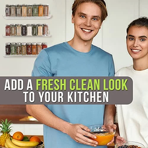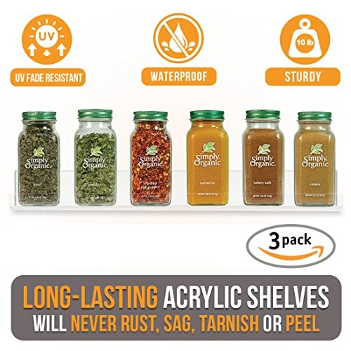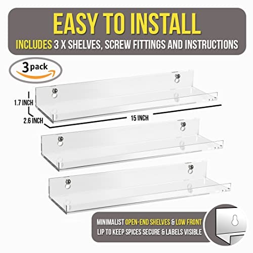 Home3-Pack Clear Acrylic Wall Mounted Spice Rack Shelves with Open Ends