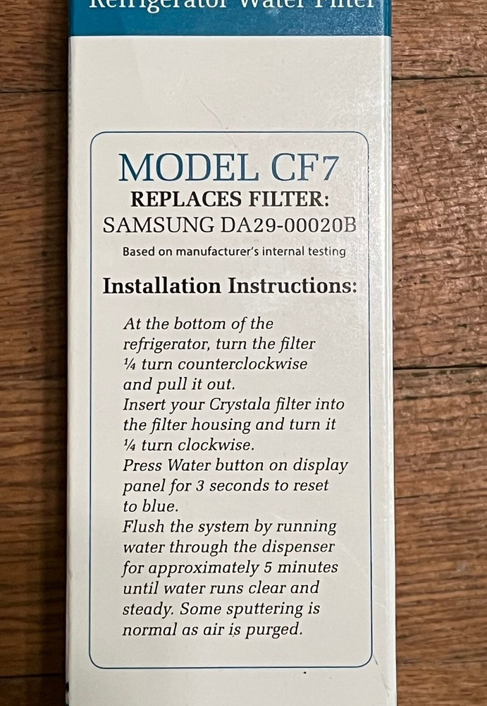 Compatible Model: For Samsung Aquarius Contaminant Removal: Chlorine Type: Water Filter Model: Crystala CF7 Compatible Brand: For Samsung Color: White Number in Pack: 3 Brand: Crystala Material: Plastic