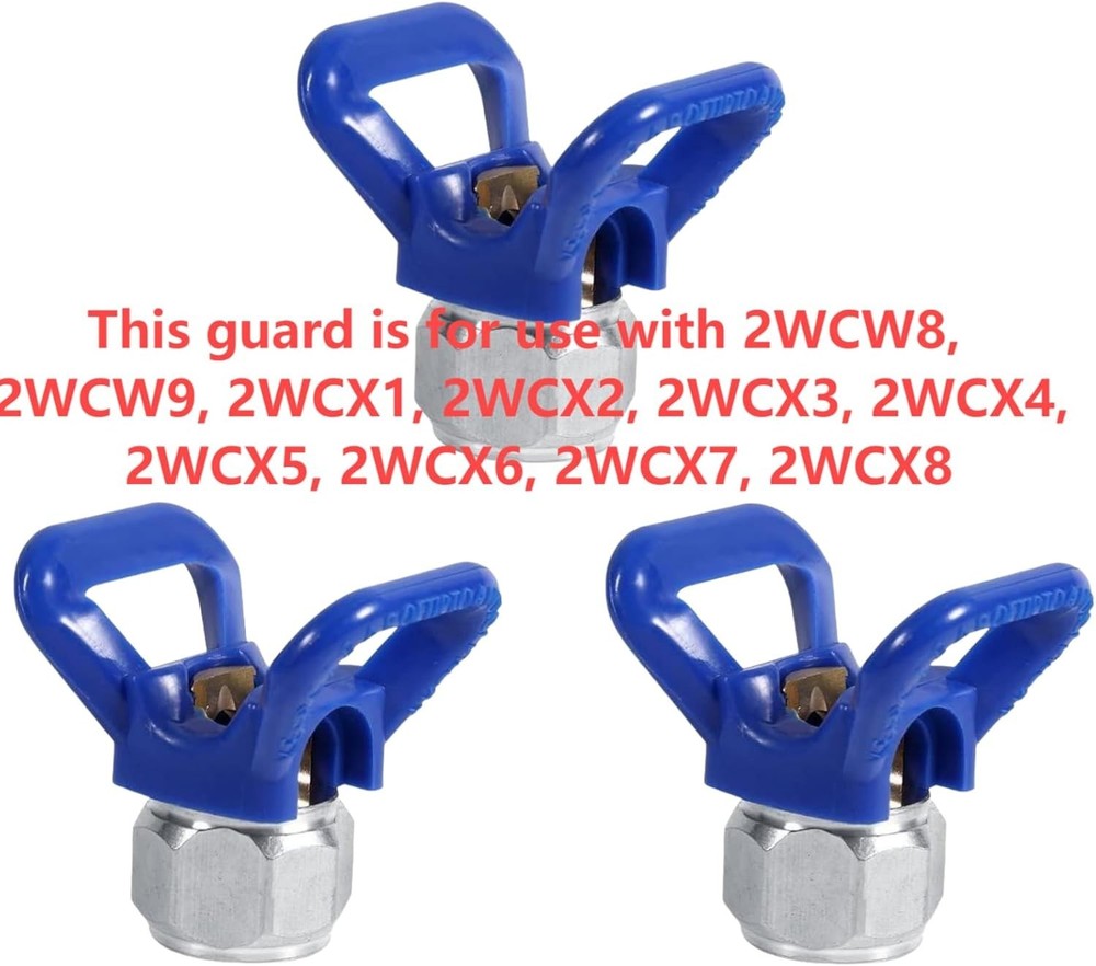 (3-Pack) 246215 7/8-inch Guard Base G7/8 Blue X Reversible Spray Tip Nozzles Features: [Replaces Part Number]: 246215 This guard is for use with 2WCW8, 2WCW9, 2WCX1, 2WCX2, 2WCX3, 2WCX4, 2WCX5, 2WCX6, 2WCX7, 2WCX8 The Graco Reverse a Clean airless spray guard attaches to all airless spray guns that are 7/8" thread Made of metal and high strength plastic materials, sturdy and durable to use The guard acts as a safety device to prevent a person coming into contact with the tip when spraying and also holds the paint sprayer tip in place