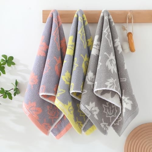 3-Pack Grey Yellow Pink Maple Leaf Hand Towels - Soft Decorative Kitchen Towels