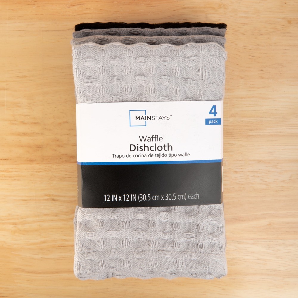3-Pack Mainstays 100% Cotton Waffle Weave Dishcloths 12x12 Inch 4-Piece Set