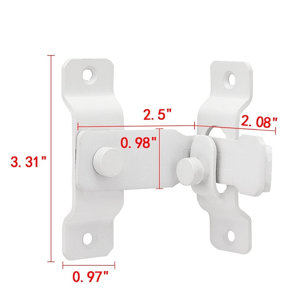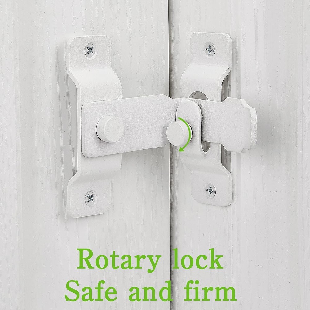 【Safety & Protection】—Thickened design makes the lock catch more firm and increases the anti-theft function. After closing the rocker, you can tighten the knob to fix the rocker to prevent it from being lifted from the outside 【Robust Stainless Steel】— This gate latch is forged from robust stainless steel, ensuring it remains pristine with minimal maintenance. The matte white finish is not only visually appealing but also crafted to endure the test of time, resisting the elements and daily use without showing signs of wear. 【Versatile Usage】— This barn door latch is not just for doors; it's perfect for cabinets, bathrooms, toilets, windows, and furniture. It's also an excellent choice for pet owners seeking a secure door lock. It's a practical and stylish addition to your home that offers a cost-effective alternative to traditional door locks, without compromising on security or aesthetics. 【Super Simple Installation Method】— The door latch is included 2 part,Rotating design, Package includes mounting hardware, even if you don't have a DIY background, you can quickly complete the installation, you just need to use a screwdriver to screw the 4 mounting screws to fix it. The lock's 360° rotation capability allows for versatile installation options, accommodating left and right side mounting preferences.But you need to pay attention to the distance of the rotation card, if the distance is wrong, it will not work properly. 【Package Included】—3 × 90 Degree Flip Barn Door Lock, 12 × screws. 【Safety & Protection】—Thickened design makes the lock catch more firm and increases the anti-theft function. After closing the rocker, you can tighten the knob to fix the rocker to prevent it from being lifted from the outside 【Robust Stainless Steel】— This gate latch is forged from robust stainless steel, ensuring it remains pristine with minimal maintenance. The matte white finish is not only visually appealing but also crafted to endure the test of time, resisting the elements and daily use without showing signs of wear. 【Versatile Usage】— This barn door latch is not just for doors; it's perfect for cabinets, bathrooms, toilets, windows, and furniture. It's also an excellent choice for pet owners seeking a secure door lock. It's a practical and stylish addition to your home that offers a cost-effective alternative to traditional door locks, without compromising on security or aesthetics. 【Super Simple Installation Method】— The door latch is included 2 part,Rotating design, Package includes mounting hardware, even if you don't have a DIY background, you can quickly complete the installation, you just need to use a screwdriver to screw the 4 mounting screws to fix it. The lock's 360° rotation capability allows for versatile installation options, accommodating left and right side mounting preferences.But you need to pay attention to the distance of the rotation card, if the distance is wrong, it will not work properly. 【Package Included】—3 × 90 Degree Flip Barn Door Lock, 12 × screws.