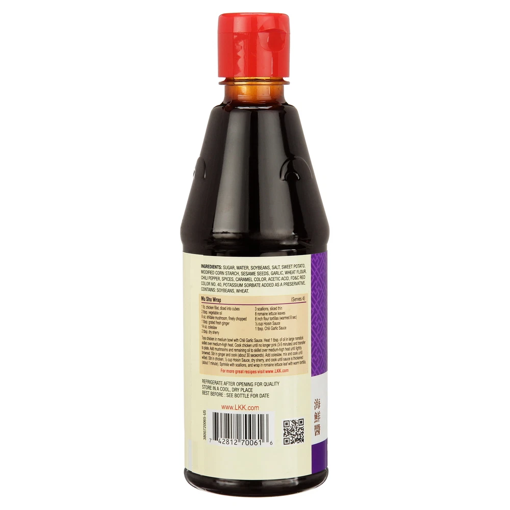Add flavor to your dinner with Lee Kum Kee brand Hoisin Sauce. Its versatile taste makes it a valuable addition to your kitchen. You can use hoisin sauce in classic Chinese dishes, such as Peking duck or Moo Shu pork, and in a wide variety of other meals. Marinate meats in it, or pour it in your stir-fry to add a sweet, delicious burst of flavor. Use it as a barbecue sauce to take your family picnic to the next level. You can even spread this sweet and spicy sauce on a pizza for a unique and tasty twist. Hoisin Sauce: Spicy and sweet Used in classic Chinese recipes Ideal as a dip, marinade or barbecue sauce Lee Kum Kee sauce is made with spices, soybeans and sweet potatoes Deliciously unique sauce for pizza 0g trans fat, no cholesterol 90 calories per serving ( 2 tbsp) Net weight: 20 oz