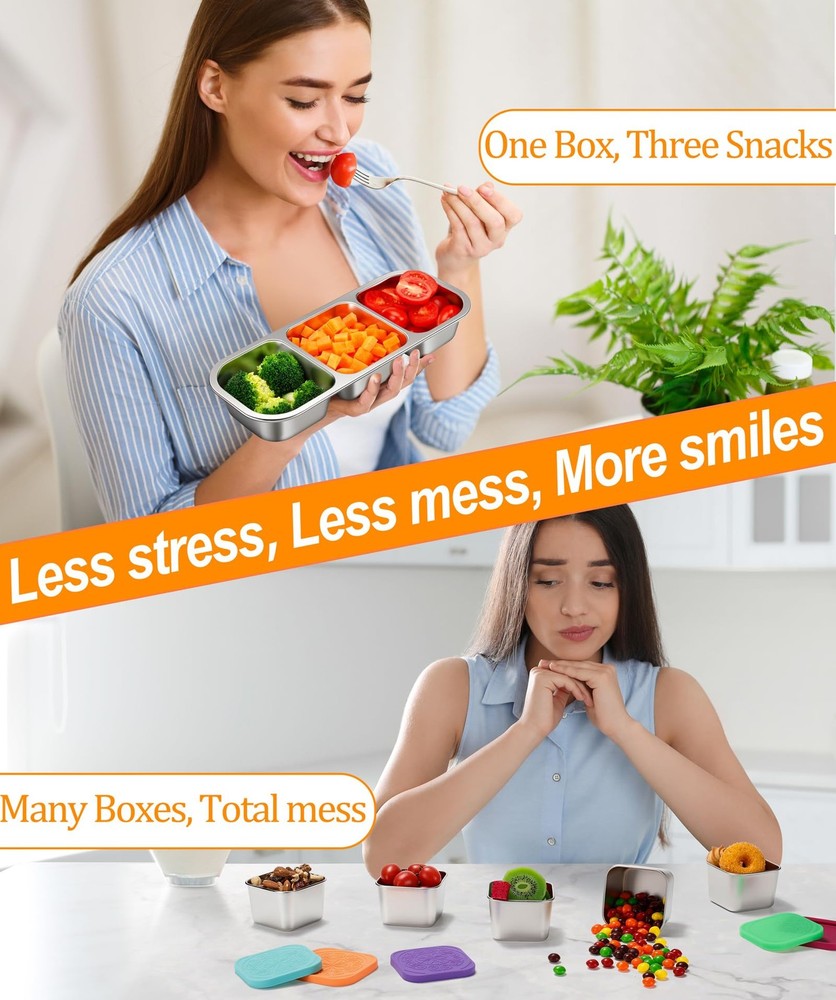 Love how these keep snacks fresh and separate without any leaks! Perfect for both my kids' lunches and my own on-the-go munchies. Durable, easy to clean, and makes healthy eating fun and mess-free. A total game-changer!