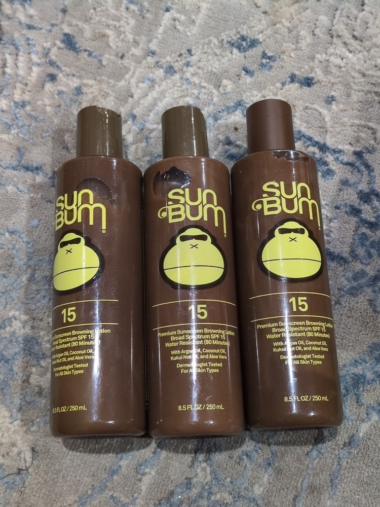 Lot Of 3 SUN BUM Premium SUNSCREEN BROWNING LOTION SPF 15 For 8.5 oz 01/26.
