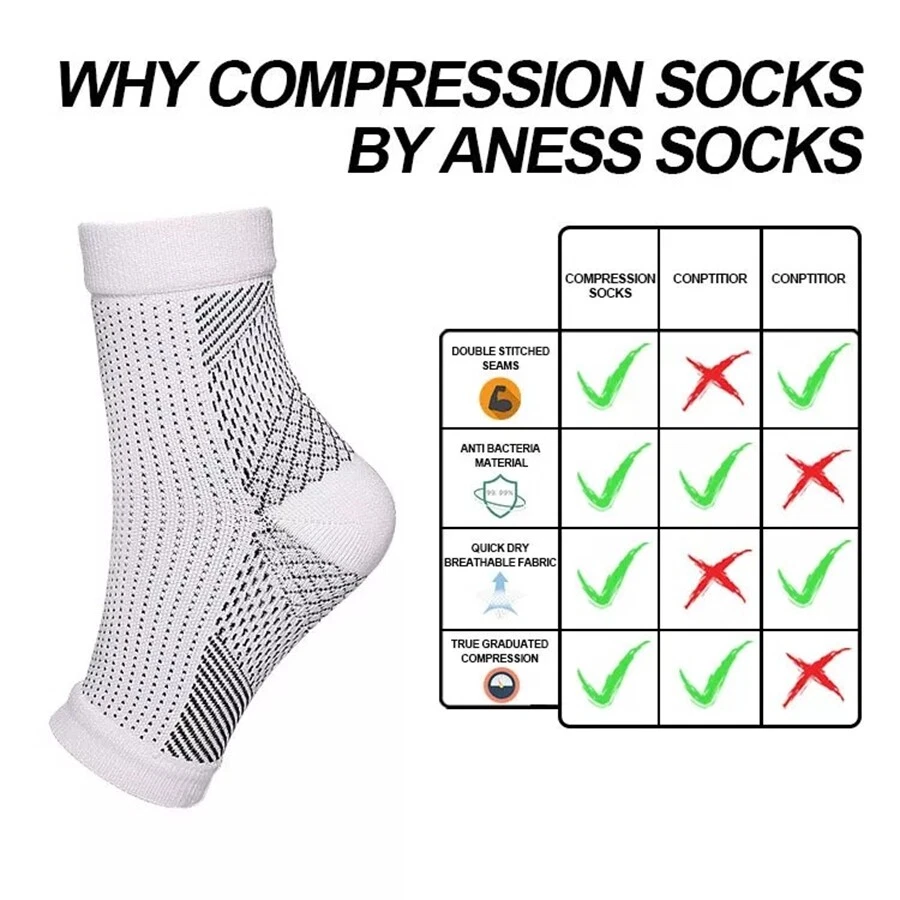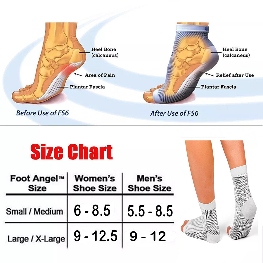 eBay Listing Template Compression Socks for Plantar Fasciitis,Achilles Tendonitis,Arthritis Relief 🌟 Revolutionary 7-Zone Compression Technology Experience targeted relief with medical-grade 20-30mmHg graduated compression that: ✅ Stimulates blood flow to reduce DVT risk ✅ Reduces swelling in ankles & feet within hours ✅ Alleviates plantar fasciitis & varicose vein discomfort ✅ Supports arches and heels during all-day activities Clinically Effective Design • Triple-layer compression zones for customized support • Breathable nylon/spandex fabric wicks moisture • Seamless invisible design under clothing • Machine-washable for easy care Anti Swelling Fatigue DVT Supports: Deep Vein Thrombosis (DVT) Varicose Vein Stimulation of blood circulation Soothes and relieves achy feet Reduction in swelling ⚠️ Directions of Use • Nylon/spandex. Machine washable.(Hand wash recommended for extended durability) • Wear 6-8 hours daily for best results • Consult doctor if you have circulation disorders • It provides three levels of compression in seven different zones. Just slip it on and the sleeve will relieve you from tired, achy feet and swollen ankles. • Feel the compression in your foot's ball, arch, plantar fascia, heel and ankle and immediately, you will feel a soothing relief. Package Contents: 3 Pairs Compression Ankle Socks Shoes Sizing Chart: S/M Women's Shoe size 6 - 8.5, Men's Shoe Size 5.5 - 8.5 L/XL Women's Shoe Size 9 -12.5 Men's Shoe Size 9 -12