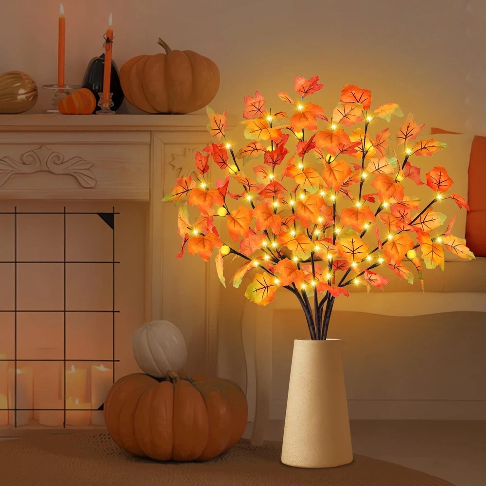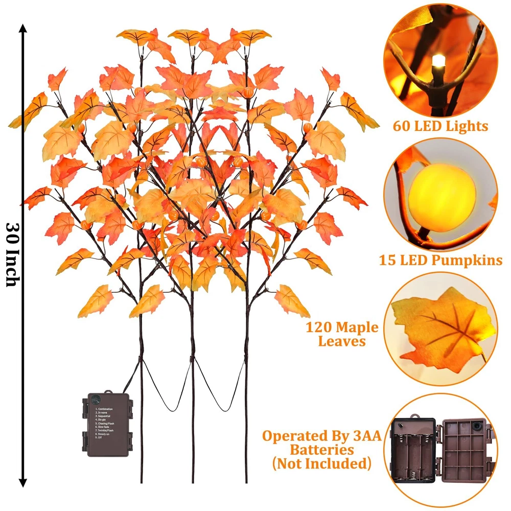 3Pcs 30" Lighted Maple Leaves Branches Thanksgiving Decorations Indoor, 60 LE...
