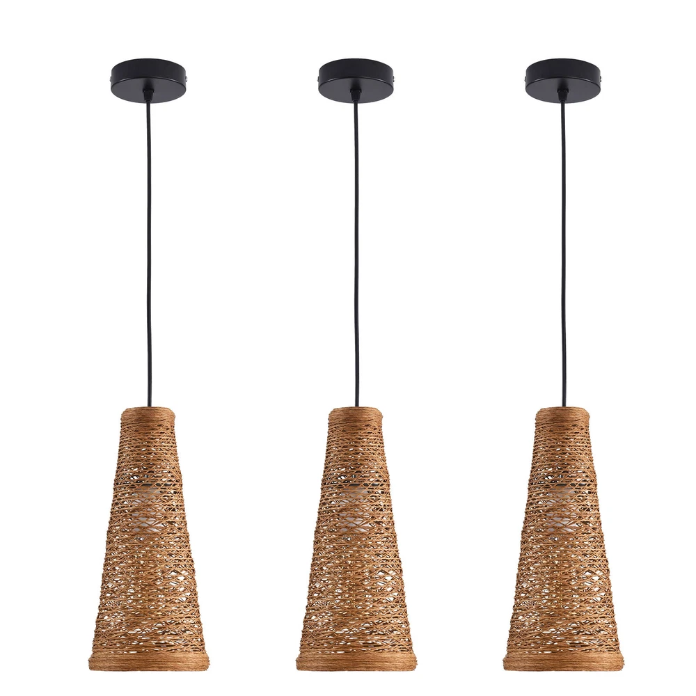 Absolutely love these pendant lights! The hand-woven rattan gives off a gorgeous boho vibe while still feeling modern. The natural texture adds warmth to any room, and the hollow design casts beautiful light patterns. Super easy to install—they instantly upgraded my kitchen with a cozy, earthy feel. The quality is impressive for the price, and the 3-pack makes it a great deal. Perfect for creating that stylish, organic look!