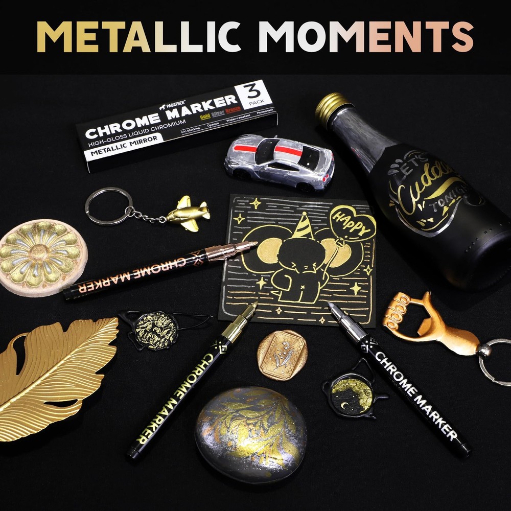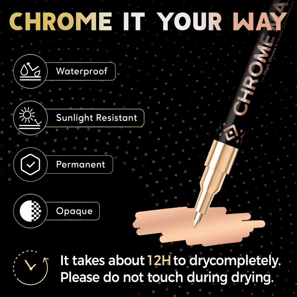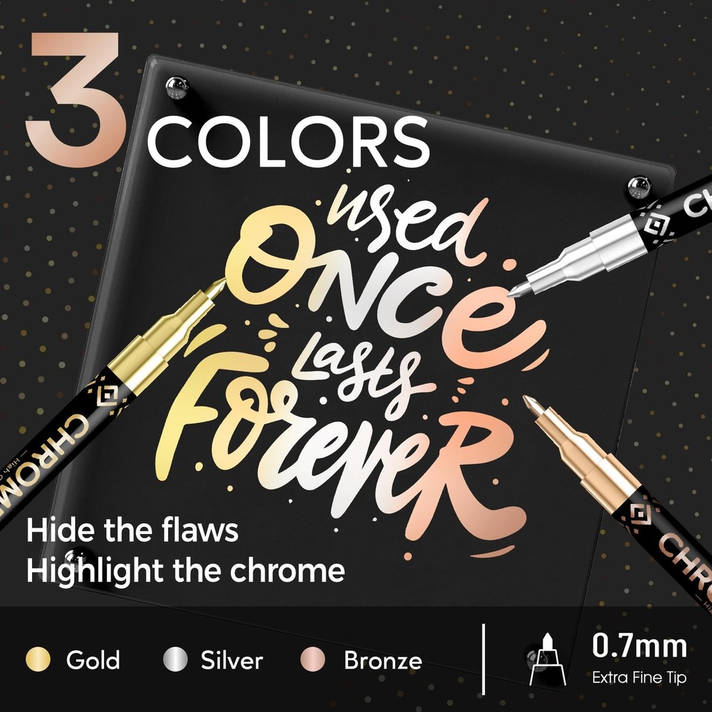 3Pcs Chrome Paint Markers, Permanent Mirror Liquid Chrome Pens for Plastic, Metal, Model, Jewelry, Wheel Painting, Touch Up & Repair Kit, DIY Art Projects Brilliant Mirror Chrome Effect – Our liquid chrome markers produce a highly reflective mirror-like metallic finish with full coverage and opacity. Ideal as chrome paint for metal, plastic, resin, and more. The durable formula is waterproof, UV-resistant, and anti-fading — a long-lasting chrome marker for any project. Gold, Silver & Bronze High Quality Fine Tip – Comes with 3 Pcs chrome pens in gold, silver, and bronze to meet your creative needs. The high-quality fine tip is perfect for precise detailing, model painting, and metal touch-ups. Chrome-plated tips enhance durability and ink control, and each pen has an increased ink volume. Reliable & Long-Lasting Formula – These liquid chrome paint pens feature a stable composition with minimal scent. They resist UV damage and oxidation, protecting your creations or jewelry — an excellent alternative to traditional chrome plating kits. Smooth Flow & Easy to Use – Designed with an innovative valve system for consistent ink flow — no leaks, smears, or interruptions. Shake well before use by twisting the cap multiple times for best performance. A must-have mirror paint pen for clean, professional results. Works on Almost Any Surface – Perfect for DIY, art, and crafts. These chrome paint pens work on metal, glass, resin, plastic, ceramic, canvas, wood, concrete, stone, plaster, and more. Please note, they are not suitable for use on paper materials. Whether for decorating or touch-ups, these pens bring your creative ideas to life. Enhance your creative projects with our 3Pcs Chrome Paint Markers, featuring silver, gold, and bronze metallic colors for a stunning mirror-like chrome effect. These liquid mirror pens deliver full coverage and a highly reflective finish, perfect for metal, plastic, resin, glass, ceramic, wood, and more. Each chrome marker is equipped with a 0.7mm extra fine tip, designed for detailed work on models, jewelry, and wheel touch-ups. The chrome-plated nibs ensure smooth ink flow and high durability, while the pens are filled with an enhanced volume of permanent, waterproof, and UV-resistant ink to protect your designs from fading or damage. The advanced valve ink control system guarantees consistent ink flow with no leaks or smears. These metallic paint pens are non-toxic, low odor, and ideal for a wide range of applications — from DIY crafts to professional-grade repair kits and art detailing. Whether you're customizing accessories, restoring chrome trim, or adding shine to your artwork, this chrome paint pen set is the perfect tool for achieving polished, high-impact results. Shipping We offer FREE shipping on all orders! We ship within Three business days of payment, usually sooner. We use a selection of shipping services such as UPS, FedEx, USPS etc. We only ship to the lower 48 states, no APO/FPO addresses or PO Boxes allowed. Local pickups and combined shipping options are not provided at this time. Return You can return a product for up to 30 days from the date you purchased it. Any product you return must be in the same condition you received it and in the original packaging. Please keep the receipt. Payment We accept payment by any of the following methods: PayPal Please pay as soon as possible after winning an auction, as that will allow us to post your item to you sooner! Feedback Customer satisfaction is very important to us. If you have any problem with your order, please contact us and we will do our best to make you satisfied. Contact Us If you have any queries, please contact us via ebay. We usually respond within 24 hours on weekdays. Please visit our eBay store to check out other items for sale! Thank you for shopping at our store.