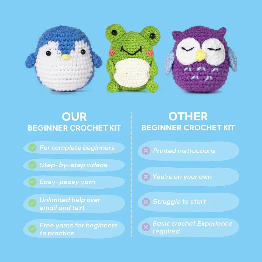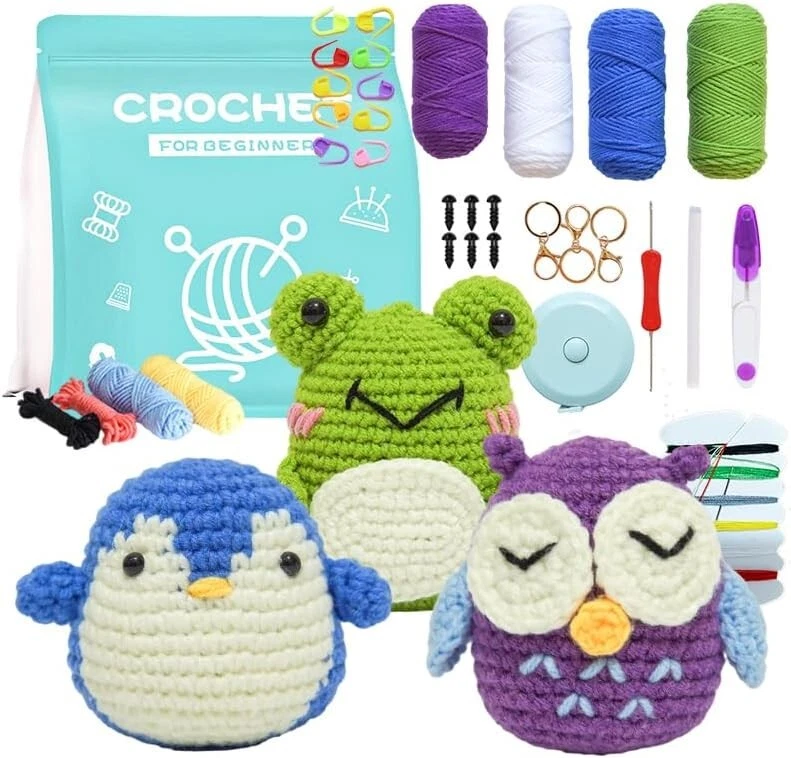 STEP-BY-STEP GUIDE & VIDEO: Looking for the perfect crochet kit for beginners? Look no further than our crochet animal kit! With easy-to-follow instructions and beginner-friendly techniques, this set is perfect for those new to the craft.Our step-by-step videos for users guide beginners from start to finish! CROCHET KIT FOR COMPLETE BEGINNERS: This beginner crochet kit for adults includes all the knitting and crochet supplies you need to create three adorable creatures. With high-quality yarn in a range of colors,eyes, a yarn needle, a crochet hook, stuffing, keyhook and a bag that holds it all , this kit has everything you need to get started. CUTE DESIGN: make a frog penguin owl, we are equipped with enough threads for beginners to learn without worrying about running out of threads, each project is fun to make and will put a smile on everyone's face. GREAT GIFT: Not only is this set perfect for beginners, it's also a great gift idea for anyone who loves crochet or cute animals. Whether you're making them for yourself or for someone else, these creatures are sure to bring a smile to your face. Contact us If you have any questions, suggestions or product inquiries, you can contact elcanous customer service at any time via eBay messages. We will get back to you within 24 hours and you can be sure that we will do our best to help you! Payment We accept Payoneer, Visa,Immediate Payment is required! Shipping We provide FAST, FREE SHIPPING to the Continental 48 US States. We do not ship to Alaska, Hawaii, APO/FPO, PO Boxes, or any US Protectorates. PLEASE PROVIDE A PHYSICAL ADDRESS. Your order will be processed within the allotted time frame. Most items ship out with 3 Business Days after payment is received. Please not that some orders may be shipped in multiple packages. Return We take our reputation seriously. If you have any questions or concerns, please contact us and we will respond back to your message within 24 hours.