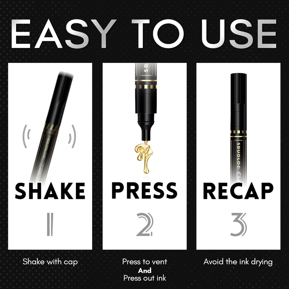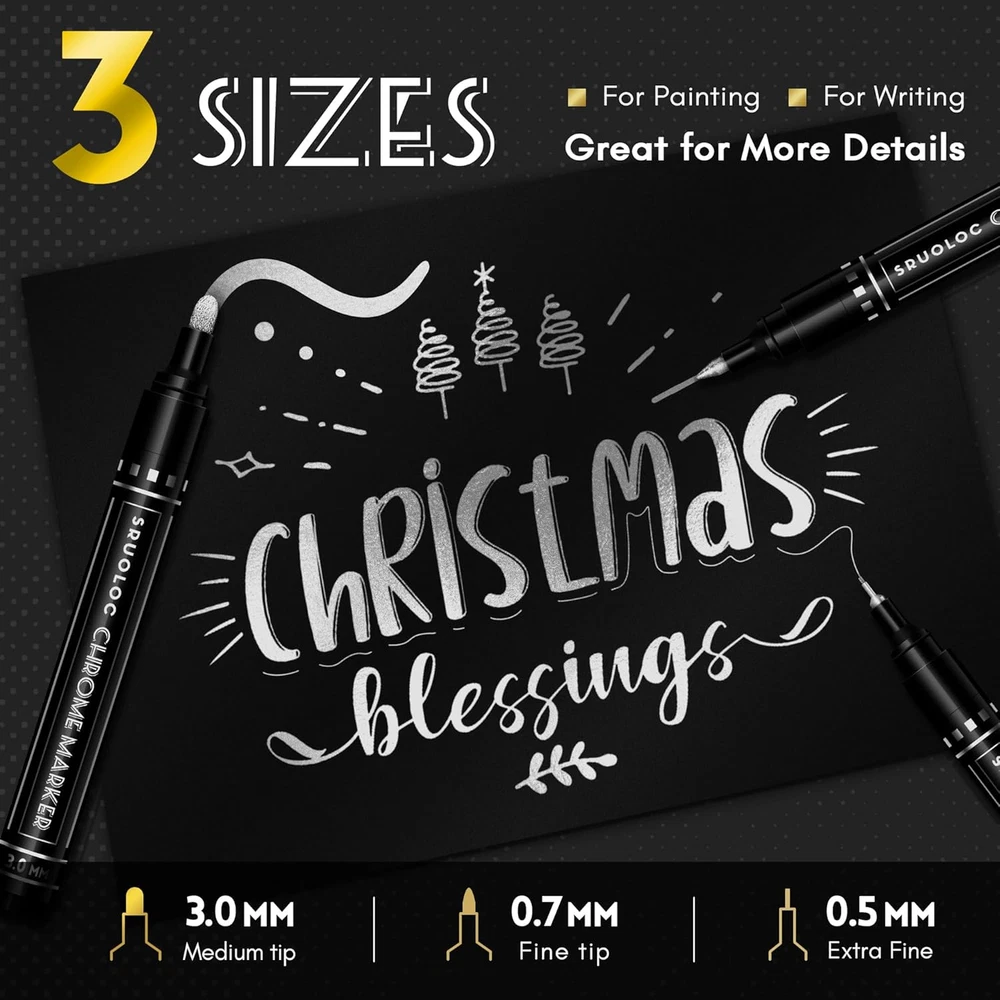 Store New Arrivals Add to Favorite View Feedback Contact Fast deliveries to the customer's home Quality customer service John Make the customers happy! 3Pcs Liquid Chrome Paint Markers, Oil-Based Permanent Chrome Maker, Gloss Mirror Marker Repairing, Reflective Metallic Pen Markers for Touch up Model Painting DIY Art Projects, Silver Description Liquid Chrome Marker -- SRUOLOC Liquid Chrome Marker can create a high-gloss real mirror effect in almost all smooth surfaces such as plastic, glass, stone, ceramic rock, glass, wood, paper Non-Toxic and Safe – SRUOLOC mirror chrome markers are non-toxic, Each thick permanent marker meets ASTM d-4236 and EN-71 safety standards, are suitable for artists of all ages Various Sizes -- Available in 3 pen tip sizes: 0.5 mm, 0.7 mm, 3.0 mm to satisfy for model tracing or details working and large area graffiti, covering the unsightly scrape and satisfy all your creative needs Long-Lasting Ink -- Our mirro markers with highly pigmented formula is scratch, UV and weather resistant Perfect Quality -- Not only product quality but also perfect after-sales service, if you have any questions about SRUOLOC color liquid chalk markers, please feel free to contact us, we will solve it for you asap Product Description Item model number SC-ART0006 silver Closure Pull Cap Number of Items 3 Color 3Pack - Chrome Material Type Plastic Line Size 0.5-3 Millimeters Manufacturer Part Number SC-ART0006 silver Item Weight 1.76 ounces Point Type Extra Fine Ink Color Silver Special Feature Eco Friendly, Non Toxic Package Dimensions 5.67 x 1.54 x 0.67 inches Size 1 Count (Pack of 3) ABOUT US We offer the best prices around on high quality products. Our E-store includes media such as books, movies, music and games while offering electronics, toys, sporting apparel, clothing, tools, general home, garden items and more. SHIPPING We are always working hard to ensure your package arrives as soon as possible. Please understand that some factors like weather, high postal traffic, and the performance of shipping companies are outside of our control. We offer free shipping to the lower 48 states and ship within 2 business days of payment, usually sooner. We do not accept P.O. Boxes. Please provide a physical address. For shipping outside of the continental USA, we only use eBay's Global Shipping Program. The item is shipped to KY and then sent to the rest of the world. International customers are responsible for all duties and taxes. Continue to 'check out' to calculate costs for shipping the item to your country. Messages regarding eBay's Global Shipping Program MUST be directed at eBay EXCLUSIVELY. RETURNS We offer a 30-Day Return Policy on items in which you are not completely satisfied with. You have the option of a full-refund or an exchange of the item. No returns are available on items shipped outside of the USA PAYMENT We accept PayPal. CONTACT US This page content is yet to come Please ad us to your favorite seller and visit again later Thank You CUSTOMER SATISFACTION We try our very best to make sure every customer is completely satisfied. If there's a problem, message us! We're happy to help. WE ACCEPT