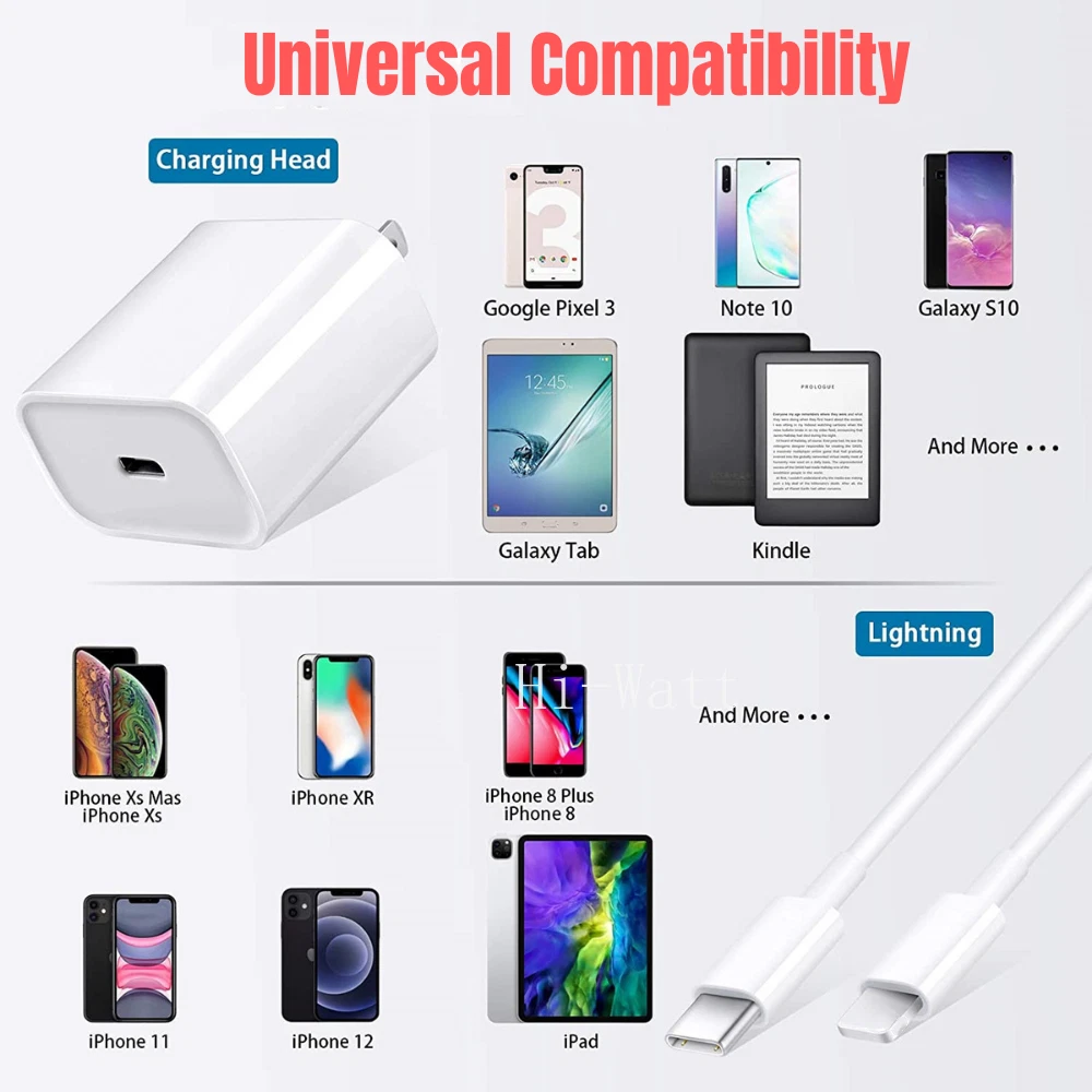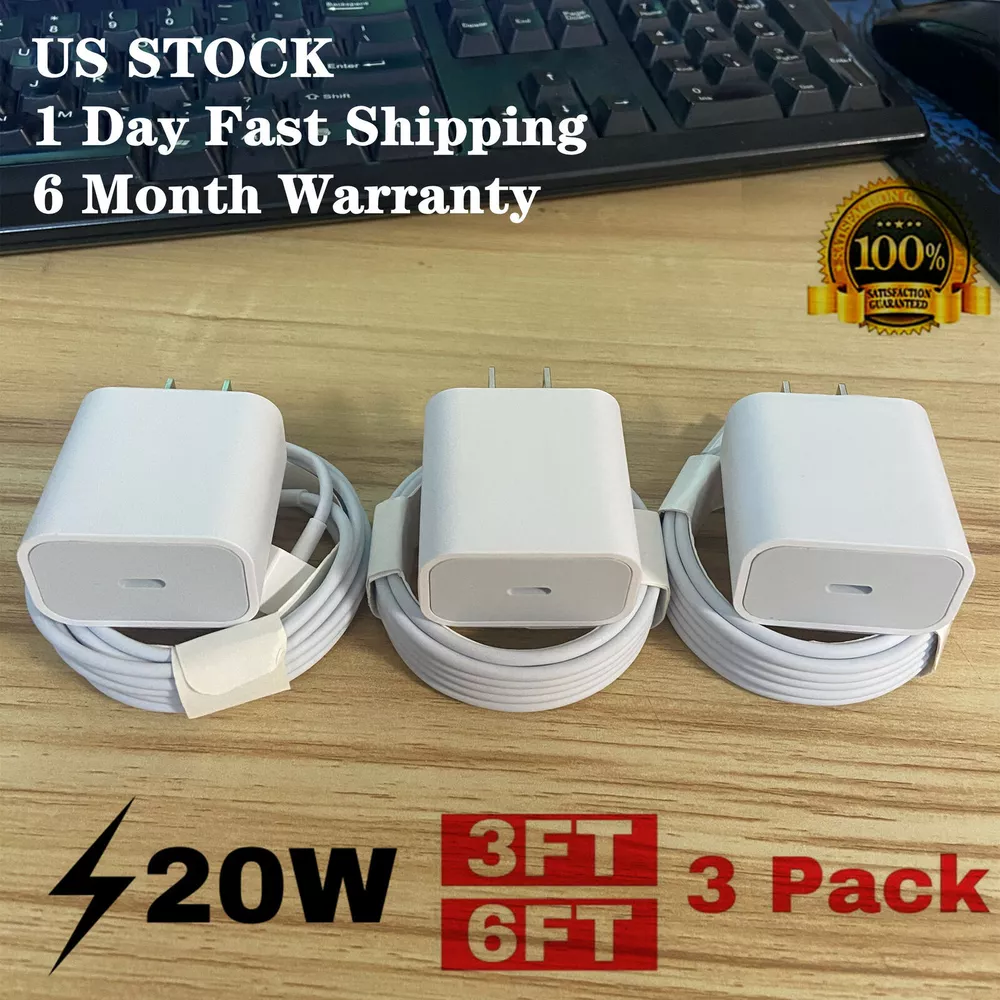 eBay 3-PACK 20W Fast Charging Wall Charger Type-C to iPhone Cable For iPhone 13 12 XR If you choose 1x3ft cable,we will send you 1xcable only,not 3xcables. Specification: Type: PD Fast Charger, Wall Charger , Power Adapter, Car Charger, Charger Adapter, USB-C Cable, Charging & Data Sync Cable, Type-C, USB Cable, USB-C to iPhone Cable Features: Fast Charge, Lightweight Color: White Length: 1m/3ft,2m/6ft Ultra-Fast Charging : 20W USB-C For iPhone fast charger, For iPhone 12 up to 50% in just 30 minutes, which saves more than 1 hour for you, when compared to the 5W original charger. Fast Charging & Data Transfer : Top quality For iPhone cable is made of excellent copper cord, which charge For iPhone safely and fast. Work perfectly with wall charger or computer. It not only a safe For iPhone charge cable, but also a fast transferring For iPhone data cable. Tangle-free 6 Foot length is convenient for usage while charging and sync at home/office/travel in bed, hotel rooms, and more. Safety Protection: The Charger Internal High-Quality Chips Protect Your Devices from Heating, Short-circuiting, and over Charging. Our Technology Teams Make Tens of Thousands of Tests to Ensure Users and Devices Safety . Universal Compatibility: 20W USB-C power adapter & C to iPhone cable set, compatible with for iPhone 12/12 Mini/12 Pro/12 Pro Max/11/11 Pro/11 Pro Max/XS/XS Max/ XR/X/8 Plus/8, For iPad Pro/Air/ Mini and More. Travel Ready : Lightweight and pocket-size, USB-C wall charger with 3/6FT charger cable maximizes portability wherever you go. And a wide range of 100-240V input makes it ideal for world travel. Comprehensive Compatibility : With the Corey kin 20W wall charger to access the fast charging For iPhone 14/14 Plus/14 Pro/14 Pro Max, For iPhone 13 mini/13/13 Pro/13 Pro Max, For iPhone 12/12 Mini/12 Pro/12 Pro Max/11/11 Pro/11 Pro Max/XS/XS Max/ XR/X/8 Plus/8/7/7 Plus/6; for iPad Pro 10.5”/for iPad Air 3 10.5”/for iPad Mini5 7.9” and More.
