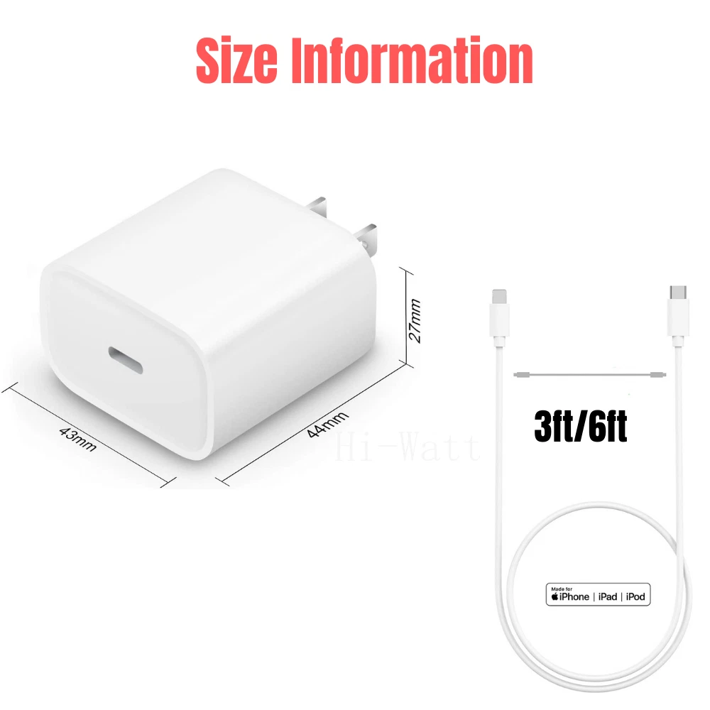 3Pcs Lot 20W PD Fast Charger For iPhone 14/13/12/Pro/11 USB Type C Adapter Cable