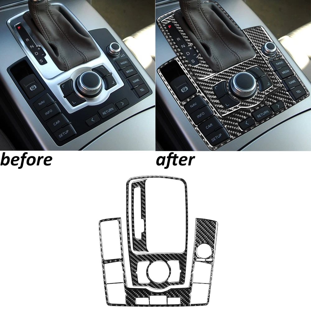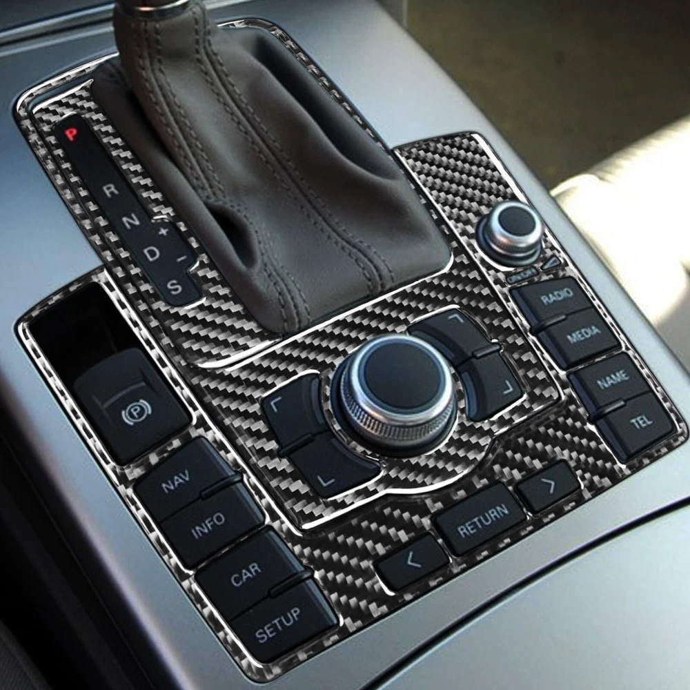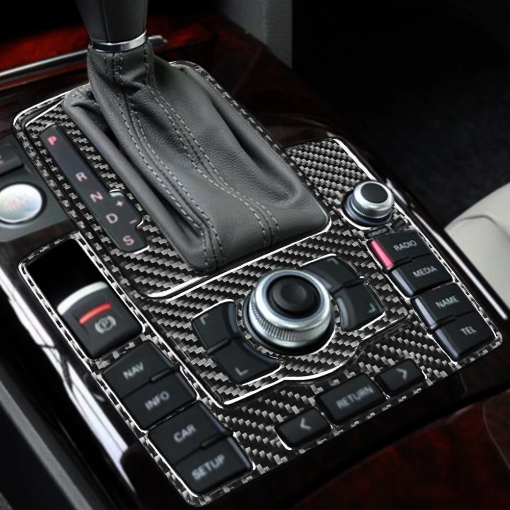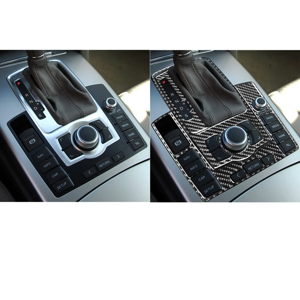 3Pcs Real Carbon Fiber Console Gear Shift Panel Trim For Audi A6 S6 C6 2005-2011
