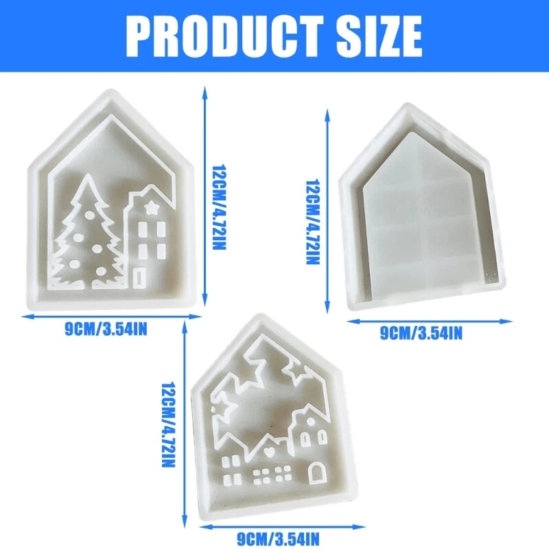 3Pcs House Resin Silicone Molds for Tealight Stand Holder Home Decoration Features: Unique house resin silicone molds, very suitable for crafting holder, tealight holder, gypsum decoration, Christmas decoration, home decoration, epoxy resin project. Crafted from grade silicone. Soft and flexible, good durability, easy to use. Dishwashers, oven, and fridges safe, not easy deformed. Used as holder silicone molds, concrete cement silicone molds, and epoxy resin molds. Use our house shaped stand silicone molds to make tealight holder, gypsum decoration, resin craft. Could be used with concrete, cement, gypsum, clay, epoxy resin or for baking tool. For crafting holder, holiday party decoration, you could add various embellishments, such as dry flower, sequins, rope, resin color and other crafting supply you like. Great for crafting stand, tealight holder, gypsum decorations, home holiday decoration, Christmas present, birthday present, wedding decoration, Valentines present, and more. Specifications: Color: White Component: Silicone Size: Approximately. 12x9cm/4.72x3.54in Weight: Approximately. 109grams Package Includes: 3Pieces House Shaped Silicone note: 1.Please allow 0-1cm error due to manual measurement. make sure you donot mind before bid. 2.Due to difference between different monitors, the picture may not reflect the actual color