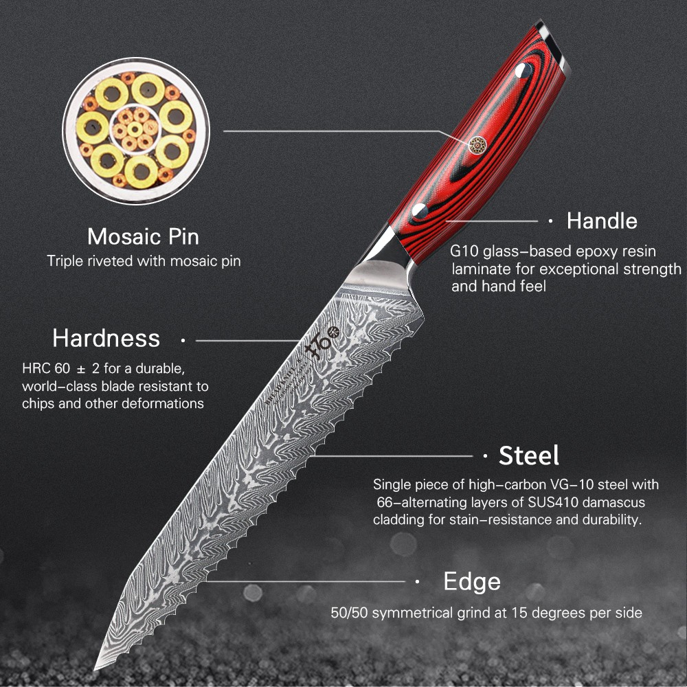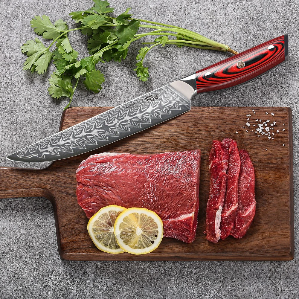 Products information: DAMASCUS KNIVES 3Pcs TURWHO Kitchen Slicing Knife Japanese VG10 Damascus Steel Bread Knife Set with Red G10 Handle Products information: ✔️High Quality Material:This slicing is made of high quality Japanese 67-layer Damascus steel and treated with 60HRC vacuum heat treatment and liquid nitrogen cooling. The Rockwell hardness of the cutting core is 60+. The cutting edge are 16-18 degrees, which means the blade is super sharp. Compared with similar products at this price, it has outstanding performance advantages. ✔️Exquisite appearance: Good ingredients need a good operation, such as French oysters, Japanese beef, wild salmon. The good knife with a delicate and impressive fishbone pattern please your fun of cooking. Then don’t forget to clean and wipe your cleaver up after using, to make a perfect finish to your cooking. ✔️UNRIVALED PERFORMANCE:The point at the end of a carving knife is designed to get into hard-to-reach areas around a joint to help separate meat from the bone. The flexible blade is for cutting thinner slices of roast, such as the large roast slices, pork slices, hams and sashimi of Tuna. It can also be used for slicing fruit and vegetables. .✔️FRIENDLY DESIGN: Ultra-premium red G-10 handle is military grade with life-long durability, The weight of the handle is moderate, which can ensure stable.The shade of handle is designed based on the human engineering. This can lessen your tiredness, numbness, and soreness even if you grasp it for a long time. Brand: TURWHO Blade Material: Japanese VG10 67-layer Damascus Steel Handle Material: Red G10 Handle Cutting edge: 15 degrees Food Compatibility: vegetables, fruits, meats, Bread and fish Manufacturer Warranty: Lifetime Weight: 1180g TURWHO Trust: We promise a superior product that will give you a lifetime of exemplary service, try it risk free, we know you'll love it. Package included: 1x TURWHO 8inch Slicing Knife 1x TURWHO 8inch Bread Knife 1x TURWHO 3.5inch Paring Knife 1x Premium Gift Box 1x Operation Instructions Item Specifics Features Damascus Steel, Well Balance, With Gift Box Manufacturer Warranty Lifetime Material Japanese VG10 Damascus Steel Custom Bundle Yes Bundle Description 3x Knife In Gift Box Number of Items in Set 3 Blade Edge Straight Handle Material Red G10 Handle Blade Length 3.5in, 8in, 8in Cutting edge 15 degrees Brand TURWHO Style Modern Color Red Set Includes Knife Set Room Kitchen Food Compatibility Universal Type Knife Set Making Method Hot Air Hardness 60HRC Payment All purchases will go through eBay secured checkout to ensure that your order is processed without any delays. After you have made your purchase you can either click on 'Pay now' or follow the instructions in an automated email that you will receive shortly after your purchase. During the checkout, you can make an immediate payment by PayPal account, MasterCard, Visa or select an alternative method of payment, and receive the necessary payment details. Please note: If you have already marked payment as sent But actually not paid, then you MUST mark as payment not sent otherwise the PAY NOW button will not be available. Shipping 1.all orders will be Dispatched within 2 working days after payment. 2.orders are not processed on weekends or public holidays. 3.usually takes 3-6 business days to most US destinations. 4.Your patience would be much appreciated. 5.all items will be checked carefully and packaging well before send out. 6.All orders are including the tracking number. Any questions, please feel free to contact us. Returns Refund or replacement request is available only the requests within 60 days after parcel received & return the item as the same condition as received. Please contact us to request a return authorization. Your name, auction number, and reason for return should be included in the email. All items returned must contain all original packaging materials. Please repack the item carefully. Item returned will be tested and a new replacement will be shipped to the buyer immediately when found defective. In the event that a suitable replacement is not available then a refund will be issued. If the item is found non-defective and buyer just don't like it, we will still make you a full refund, but the return shipping fee at buyer's expense. All item return must have a RMA number, Please contact us to request a return detail address and the RMA number, this can help us identify return items accurate. Buyer is responsible for additional shipping costs for items that are returned refused or undeliverable. We do not accept any returns without an authorization number on the box or label it is being returned in. Contact Us We care about our valued buyers, if you have any questions, our Customer Service will be very glad to help you. For more information, please contact us through ebay message system. All questions would be answered within 48 hours. DAMASCUS KNIVES DESCRIPTION PAYMENT SHIPPING RETURN POLICY CONTACT US Shop Category Store Home Damascus Steel Kitchen Knife Hot Item TURWHO 8inch Slicing Knife Chef Kitchen Cook Meat Vegetable Carving Slicer Knife USD 24.99 TURWHO 9inch Bread Knife German Stainless Steel Knives Kitchen Knife with Handle USD 29.99 TURWHO 3.5inch Paring Knife Japan VG10 Damascus Steel Bird's Beak Peeling Knives USD 38.80 TURWHO 9inch Slicing Knife Slicer German Stainless Steel Kitchen Carving Knives USD 29.99 TURWHO 6.5inch Boning Knife Japanese VG10 Damascus Steel Kitchen Cooking Knives USD 58.85 New List Item TURWHO 8inch Slicing Knife 67-Layer Japanese VG10 Damascus Steel Kitchen Knife USD 68.80 2Pcs 8in Bread Knife + 8in Slicing Knife Japan VG10 Damascus Steel Kitchen Knife USD 125.99 TURWHO 8inch Bread Knife Kitchen Serrated Knife Japanese VG10 Damascus Steel USD 59.80 TURWHO 8inch Bread Knife 67-Layer Japanese VG10 Damascus Steel Kitchen Knife USD 68.80 TURWHO 8in Slicing Knife Carving Knife Japanese VG10 Damascus Steel Resin Handle USD 59.80 Delivery Help & Inf