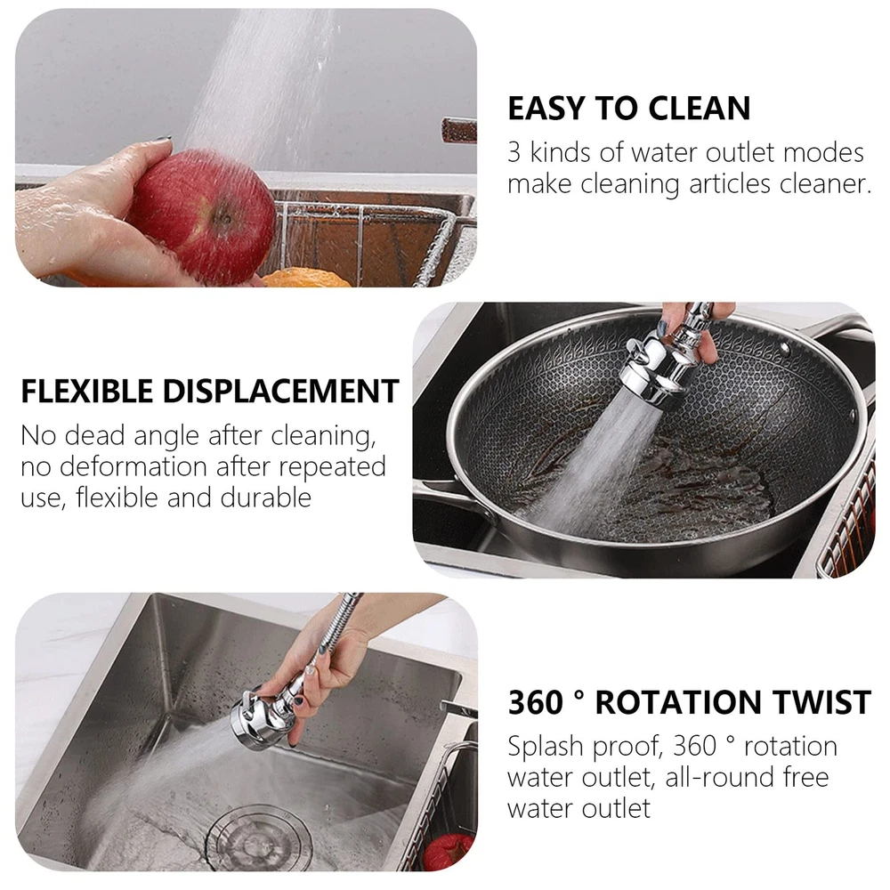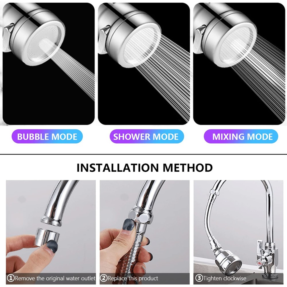 3 Pieces Kitchen Tap Head Fucet Aerator, 360 Degree Rotatable 3 Mode Adjustable Faucet Extender Kitchen Faucet Head Replacement for Bathroom Kitchen 💧360° Kitchen Tap Spray Head: The tap extender can be rotated 360 degrees to help you clean all corners of the sink without splashing. You can adjust the position you need at will 💧High Quality Materials: The tap spray head made of stainless steel and plastic, durable, not easy to break, will not rust and longevity 💧3 Modes: Three adjustable modes can be freely switched to change the water pressure, prevent splashing and effectively save water 💧Easy to Install: The tap spray head does not require tools and is easy to install, and fits all taps with 22mm and 24mm threads, can be directly installed, simple and convenient, easy to clean 💧Packaging: Includes a 3 modes long model, a 3 modes short model and a 2 modes long model, there are also with 3 conversion accessories, please refer to the size in the picture before buying, to avoid affecting your use