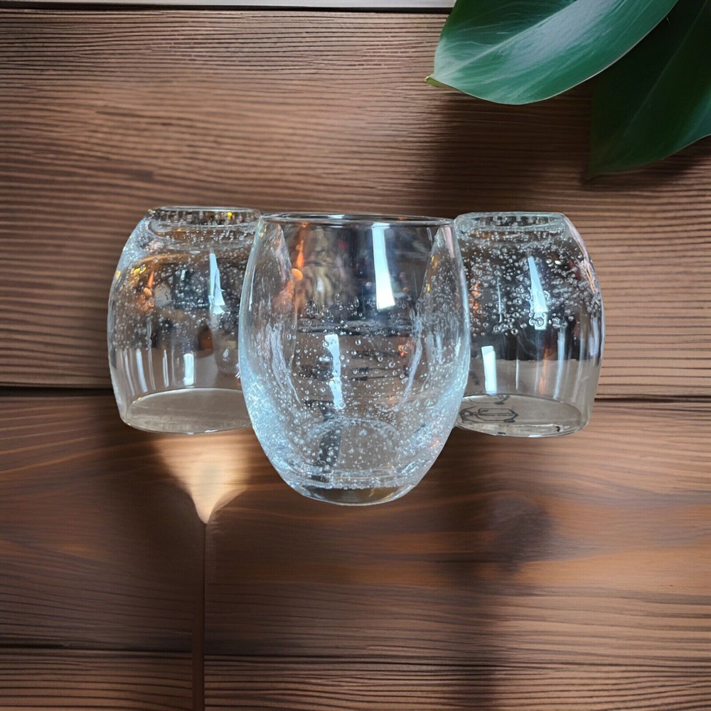 3-Piece Bubble Stemless Wine Glass Set for Drinks & Cocktails