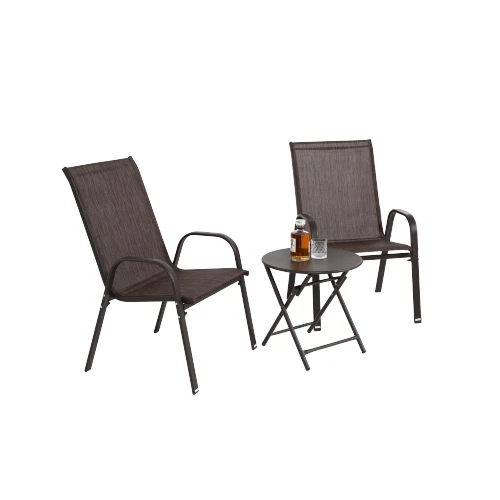 1. This set is a game-changer for small spaces! The sleek design fits perfectly on my balcony without feeling cramped, and the chairs are surprisingly comfy thanks to the breathable fabric. Love how lightweight yet sturdy they are—easy to move around but solid enough to last. The neutral color blends with everything, making it super versatile. Perfect for coffee mornings or evening lounging. Highly recommend for anyone wanting style and function!