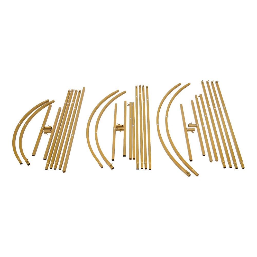 Color: Gold Material: Carbon Steel Style: Modern Shape: Arch Process: Painted+Welding Assembly Required: Yes Load-bearing Capacity: About 5/8/10kg(11/18/22lbs) Package Size: 78.5*21.5*6cm/31*8.3*2.4inch Product Size: 80*50*180cm/31.5inch*19.7inch*5.9ft, 100*50*200cm/3.3ft*19.7inch*6.6ft, 120cm*50*220cm/3.9ft*19.7inch*7.2ft Gross Weight: 5.46kg/12lbs Net Weight: 5.1kg/11.3lbs 3 Pieces Wedding Arch Stand Gold Rack Backdrop Shelf Party Decorative Frame Specification Color: Gold Material: Carbon Steel Style: Modern Shape: Arch Process: Painted+Welding Assembly Required: Yes Load-bearing Capacity: About 5/8/10kg(11/18/22lbs) Package Size: 78.5*21.5*6cm/31*8.3*2.4inch Product Size: 80*50*180cm/31.5inch*19.7inch*5.9ft, 100*50*200cm/3.3ft*19.7inch*6.6ft, 120cm*50*220cm/3.9ft*19.7inch*7.2ft Gross Weight: 5.46kg/12lbs Net Weight: 5.1kg/11.3lbs Package Included 29*Poles 1*English Manual Color: Gold Material: Carbon Steel Shape: Arch Process: Painted+Welding Load-bearing Capacity: About 5/8/10kg(11/18/22lbs) Package Size: 78.5*21.5*6cm/31*8.3*2.4inch Product Size: 80*50*180cm/31.5inch*19.7inch*5.9ft, 100*50*200cm/3.3ft*19.7inch*6.6ft, 120cm*50*220cm/3.9ft*19.7inch*7.2ft Description When you put on your white wedding dress, only a beautiful and exquisite wedding arch can match your purity and nobility! Choose this exquisite gold arch backdrop stand to open the door to happiness! The right height of 6.5ft makes it look more atmospheric. You can decorate it with flowers, greenery, balloons, tulle cloth, letters, garlands, etc. to make it a dreamy and romantic background. It will take you into the hall of happy marriage. Key Features Wonderful Memories : This gold arch backdrop stand brings a touch of style and elegance to your joyful moments and festive occasions, and uncovers your talents. Make some unforgettable moments now! Large Backdrop : The stand's 5.9/6.6/7.2ft height makes it an ideal backdrop for weddings, birthday parties and other occasions. It's large enough to look grand and beautiful without getting in the way of people walking underneath. Exquisite Material and Workmanship : It is made of solid and durable carbon steel with exquisite painting and welding, which not only enhances its sturdy and wearable features but also beautifies its appearance. Luxurious Appearance : The golden appearance and line design make it look very sophisticated and stylish. The arched design is like an elegant door and the three stands of different heights can achieve a hierarchy. DIY Fun : You can give full play to your imagination and decorate it with flowers, green plants, gauze, garlands, balloons, etc to make it a unique backdrop. This will not only let you experience the fun of handicrafts but also reap a sense of achievement. Strong Load-bearing Capacity : The tubes of this stand are screwed together, making it more durable than other arch frames. It can hold up to 11/18/22 pounds, so you can decorate it with lots of flowers and balloons without worrying about it buckling. Plant Climbing Stand : You can also place this stand where you plant climbing plants, which will provide stretching space for your plants and help them grow. Easy to Store : When you are done with it, you can break it down into smaller pieces and put it into the bag. This also makes it very easy to store and carry. Easy to Install : The simple structure and installation instructions make it easy to assemble, and you have a delicate and romantic arch. Details Wing Nuts : The wing nuts can facilitate the fixing of the product. It also makes it possible to disassemble and install this product more easily. Large Base : The size of the base is 31.5*19.7inch/3.3ft*19.7inch/3.9ft*19.7inch, which can stand firmly on the ground. Application It is suitable for weddings, birthday parties, engagements, baby showers, bachelorette parties, graduation season parties, dance parties, anniversary parties, commercial events, etc. Its load-bearing capacity is 11/18//22lbs. Notes Please note that flowers and other decorations are not included in the package. Please put it on a flat floor for installation. 3. Please allow the slight color difference caused by the shooting light and 1-3cm error due to manual measurement, and make sure you do not mind before ordering. Payment Delivery details Terms of sales About us Contact us Payment We accept ebay payment 。 Fees such as import duties, taxes are not included in the item price or shipping costs. These charges are the buyer's responsibility. Delivery details Shipping: 2-9 working days to: USA Terms of sales We maintain high standards of excellence and strive for hundred percent customer satisfaction. Feedback is very important to us. We hope that you contact us immediately before you give neutral or negative feedback, so that we can address your concerns. It is impossible to address issues if we do not know about them! About us Your satis faction is our ultimate goal. We work hard to earn your trust and future business. Our certified technicians have tested each item before shipping. The unit comes with 1 year limited warranty on all manufacturing defects. a) If you receive a defective item, you may return it or ask for a discount. Please contact us within 14 days after you receive the package. b) What you returned must be intact and in its original packaging as re? u. Customer is responsible for shipping costs of the returned item. c) We will cover the cost of shipping back t with the shipping rate indicated in the registration page. We will send you a new unit or refund the full payment you paid. Thank you. Contact us Business Hour Business Hour: Monday To Friday: 8:30 AM to 5:00 PM (Beijing China time) Due to time zones, our reply to your questions may not be immediately. But within above working time, we will reply your email within 24 hours. If it's non-workdays, please kindly be patient and wait till Monday. Please contact us with ebay message. Please feel free to contact us if you have any questions.