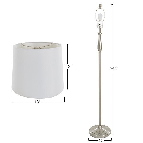 Transform your living space instantly with the stylish form and function of this Three-Piece Table and Floor Lamp Set by . Featuring two lamps for living room end tables and one floor lamp ideal for brightening dark corners, this matching lamps set boasts easy-to-match white shades and a sleek brushed finish for simple blending with transitional furnishings. This three-piece lamp set includes the three LED bulbs required for operation, ensuring convenient use right out of the package and energy-efficient living room or bedroom lighting. IMPORTANT: is committed to providing the consumer with the absolute best price and value on our entire line of products. NOTE: This is an exclusive product of and ONLY 2-Piece Table and Floor Lamps Sets by are GUARANTEED to be genuine. Avoid buying counterfeit products and transacting with unauthorized sellers. 3-PIECE LAMP SET - Incorporate these lamps for living room end tables with both traditional and modern decor. The sleek transitional styling helps this three-piece lamp set blend beautifully with classic and contemporary furnishings alike. COORDINATED LOOK - Tie your living room or bedroom decor together with a coordinated lighting scheme. This three-piece table and floor lamp set features a matching design to give your living space a polished, attractive appearance. EASY MATCHING - Pair this three-piece table and floor lamp set with virtually any palette for easy decorating. The white drum shades and brushed steel finish complement color schemes from basic and pastel to vivid and rich for fuss-free decor matching. ENERGY EFFICIENT - Enjoy bright lighting with low energy costs by using this three-piece table and floor lamp set. This three-way rotary switch lamp set includes three replaceable LED bulbs that last longer and use less energy than standard bulbs. PRODUCT DETAILS - Materials: Fabric Shades and Steel Lamp Bodies. Dimensions: Table Lamps: (W) 13" x (H) 25.5" x 5.5" Diameter Base and (L) 60" Cord; Floor Lamp: (W) 13" x (H) 59.5" x 10" Diameter Base and (L) 76" Cord. Color: White and Brushed Steel.