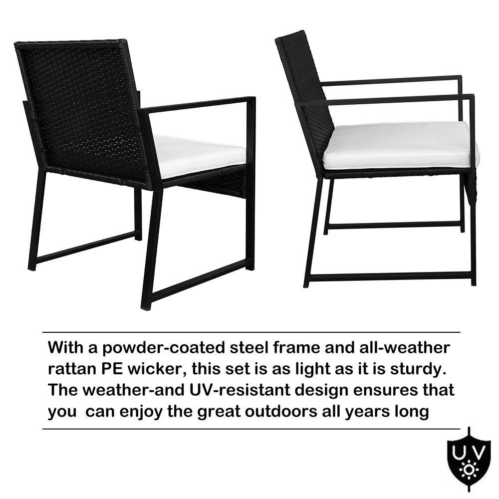 3-Piece Patio Bistro Set with Wicker Chairs Outdoor Rattan Furniture