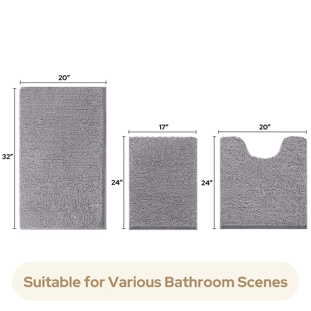 3-Piece Ultra Soft Non-Slip Chenille Bathroom Rug Set for Toilet and Shower