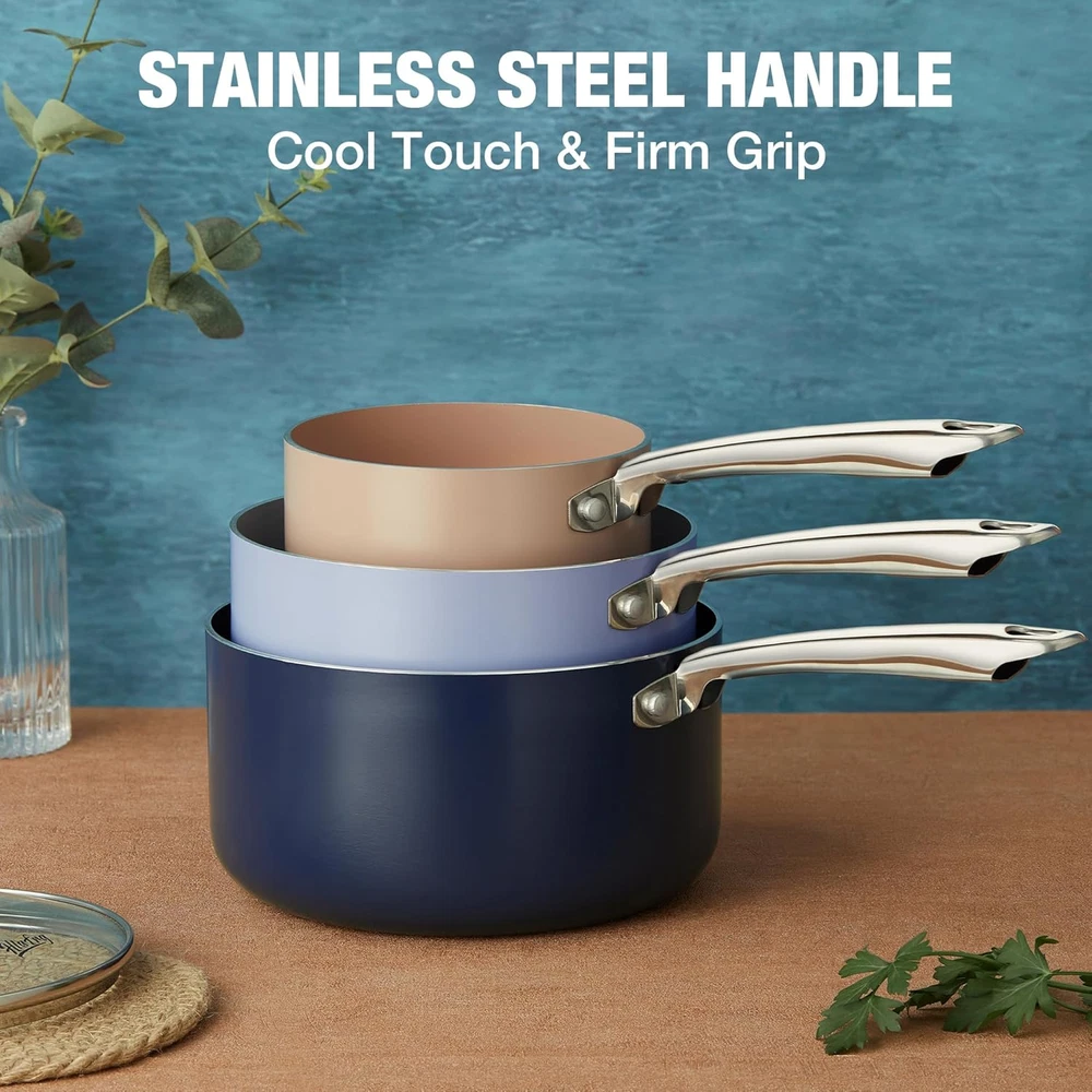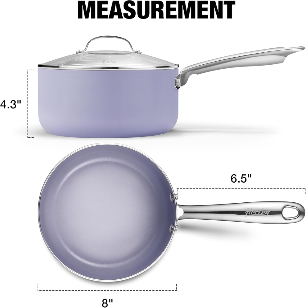 1.5 Quart Ceramic Nonstick Stainless Steel Saucepan with Lid