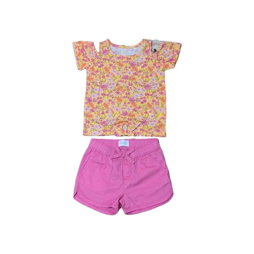 Get your little girl ready for summer with this adorable 2-piece outfit from The Children's Place. The set includes a colorful flower-themed T-shirt with short sleeves and a comfortable pullover shorts. Both pieces are made from a soft cotton blend material that is perfect for all seasons. The multicolor outfit is perfect for casual occasions and can be easily cared for with machine washing. This shorts set is available in size 4T and is ideal for toddler girls. Add this cute and comfortable outfit to your little girl's wardrobe today! Free Shipping from Cincinnati, Ohio.