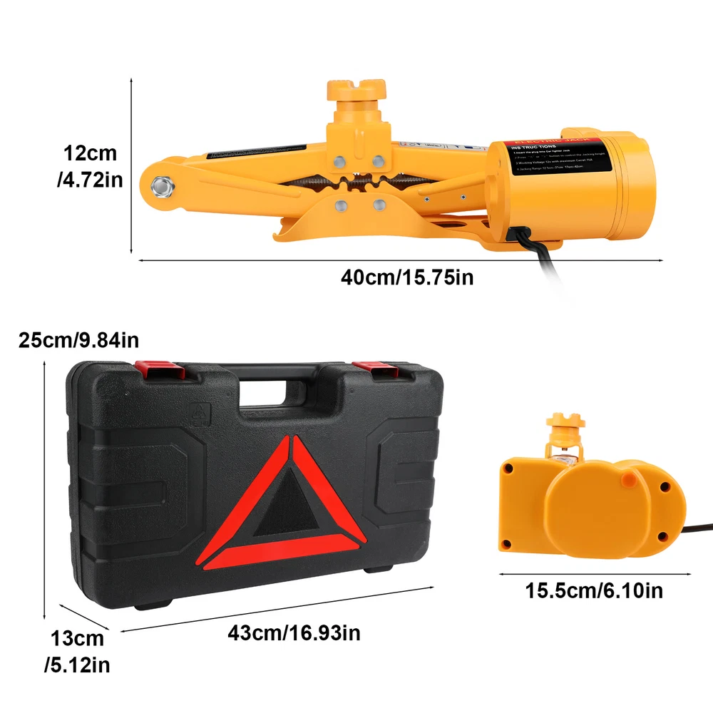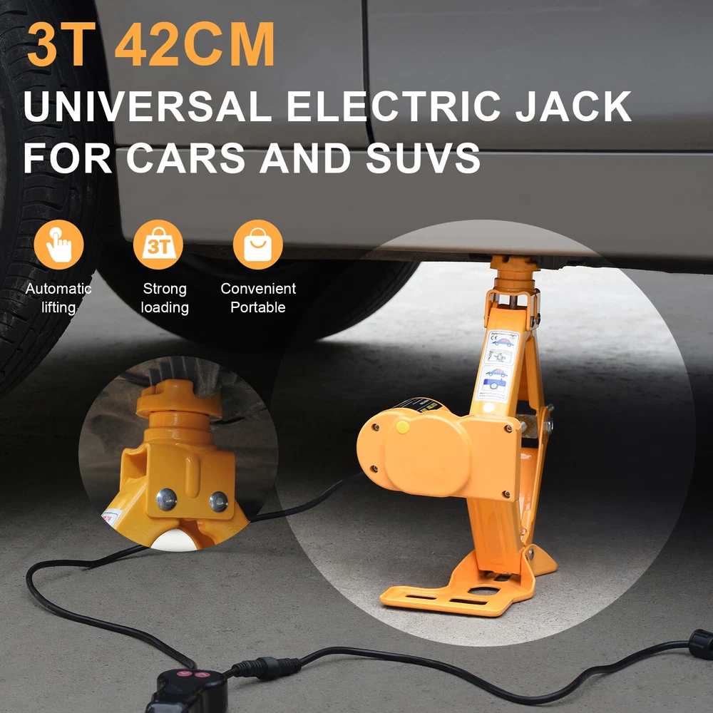 3T/5T Car Electric Hydraulic Jack Lift Remote Emergency Impact Wrench Flashlight 5T Electric Jack+Wrench Specification: Color: Orange Material: aluminum + plastic Lifting weight: 5T Tonnage: 5T Max.Torque: 450+10% N.M Air Flow Rate: 35L/min Minimum height: 13.5cm Maximum height: 53cm Adjustable height: 20cm Lifting height: 13.5cm Load capacity: 300kg Features: Powerful Electric Car Jack: Lifting capacity: 5.0 tons/11023 lbs. Lifting Range: 6.1''-17.7" / 155-450 mm. This electric car jack kit is a lifesaver during roadside emergencies and can be used for at-home garage repairs. It matches all autos, sedans, SUVs, trucks, or vehicles that suit its capacity. Lifted in Minutes: Say goodbye to tedious manual operations. Our electric jack for cars only takes about 2 minutes to reach a maximum height (17.7"). Anyone can easily lift their vehicle out of trouble. When the car jack reaches its MAX. Height, it will automatically stop lifting to ensure security. Note: The jack must be used on flat surfaces. Quick Tire Inflation: With a tire inflator pump installed in the electric hydraulic car jack, there is no need to worry about a tire-broken emergency in the middle of nowhere. Hidden toolboxes on both sides keep the inflatable tube and inflatable needles for quick tire inflation well organized. Equipped with a tire pressure display, you can monitor the tire pressure while pumping. Your car says thank you! High Stability & Security: The reliable cross-groove design of the support head effectively stabilizes the jacked car securely. The upgraded hydraulic seal system ensures no oil leaks. Additionally, The built-in LED light is bright enough to use at night, and the pressure relief valve for manual lowering provides enhanced security, even if the power is accidentally cut off. More Than 1 Way to Charge: The electric hydraulic jack for your vehicle can be powered by a 12V cigarette lighter or car battery and equipped with a long 13 feet power cord so you can place it by the front or rear tire without having to think twice. We also provide you with three spare fuses, and our fuses are TUV, and UL-certified, so you can use them confidently! Packing List: 1. Electric dual-function jack *1 2. Electric wrench *1 3. Socket *2 4. Professional non-slip gloves *1 5. Safety hammer *1 6. Battery clip *1 7. Portable tool box *1 8. Instruction manual *2 9. Fuse Wires *2 10. Air Filling Nozzle *1 11. Six-angle Spanner *1 12.Power Line (12ft) *1 5T Electric Jack Specification: Color: Orange Material: Aluminum + Plastic Lifting Weight: 5T Tonnage: 5T Max.Torque: 450+10% N.M Air flow rate: 35L/min Minimum height: 13.5cm Maximum height: 53cm Adjustable height: 20cm Lifting height: 13.5 cm Load Capacity: 300kg Features: Powerful Electric Jack: Lifting capacity: 5.0 tons/11023 lbs. Lifting range: 6.1''-17.7"/155-450mm. This electric jack is a lifesaver in case of emergencies on the road and can be used for repairs in the garage at home. It is suitable for all cars, sedans, SUVs, trucks or vehicles that match its capacity. Lifting in minutes: Say goodbye to tedious manual work. Our electric jack only takes about 2 minutes to reach a maximum height (17.7"). Anyone can lift their vehicle effortlessly. When the jack reaches its MAX height, it automatically stops lifting to ensure safety. Note: The jack must be used on flat surfaces. Fast tire inflation: With the tire inflation pump built into the electric hydraulic jack, you don't have to worry about having a flat tire in the middle of nowhere. Hidden toolboxes on both sides keep the inflatable tube and needles well organized for quick tire inflation. Equipped with a tire pressure indicator, you can monitor the tire pressure during inflation. Your car will thank you! High stability and safety: The reliable cross-groove design of the support head stabilizes the jacked-up car effectively and safely. The upgraded hydraulic sealing system ensures that no oil leaks. The built-in LED light is bright enough for use at night, and the pressure relief valve for manual lowering ensures greater safety even if the power is accidentally turned off. More than 1 way to charge: The electric hydraulic jack for your vehicle can be powered by a 12V cigarette lighter or car battery and has a long, 13-foot power cord so you can attach it to the front or rear tire without worry. We also supply you with three replacement fuses, and our fuses are TUV and UL certified, so you can use them without worry! Packing List: 1. Electric jack with dual function *1 2. Professional non-slip gloves *1 3. Safety hammer *1 4. *1 battery clamp 5. Portable toolbox *1 6. Instructions for use *2 7. Lock wires *2 8. Air Filling Nozzle *1 9. Six-angle wrench *1 10. One power cable (12ft)*1 3T Electric Scissor Jack Specifications: Input Voltage: 12V DC Max Current: 15A Rated Power: 120W Max Loading: 6600 lb (3 ton) Lifting Height Range: 4.7"-17.7" (130-420 mm) Power Cord Length: 11.5' (3.5m) Max. Torque: 480 N.m Gross Weight: 19.2 lbs (8.7 kg) Features : 【JACK CAPACITY-3.0T/6600LB】- Weight capacity of 3 ton (6600 lbs) and lifting height: 5.1"-16.5" (130-420 mm). With a 12V vehicle power outlet. Powerful and time-saving toolset with Wireless Remote. 【EASY TO USE】- Simple operation, highly practical and high safety factor. Farewell to laborious and tedious manual dismounting. 【RUGGED CONSTRUCTION】- Made with premium materials and innovated technology, it is very durable and trustworthy. 【PORTABLE CASE】- Comes with a plastic storage case for easy transport and storage. 【WIDELY USED】- Suitable for sedans, off-road vehicles, vans, light-duty trucks or any vehicle suits its capacity. It is also a favorable tool for garages, repair shops, and families. Package Content: 1 X Electric Car Jack 1 X 11.5' (3.5m) Power Cable 3 X Spare Fuse (15A) 1 X Hand Rocker Lever 2 X Top Head 1 X Remote Control 2 X Glove 1 X Battery Clip 1 X Carrying Case 1 X User Manual Payment Delivery details Terms of sales About us Conta