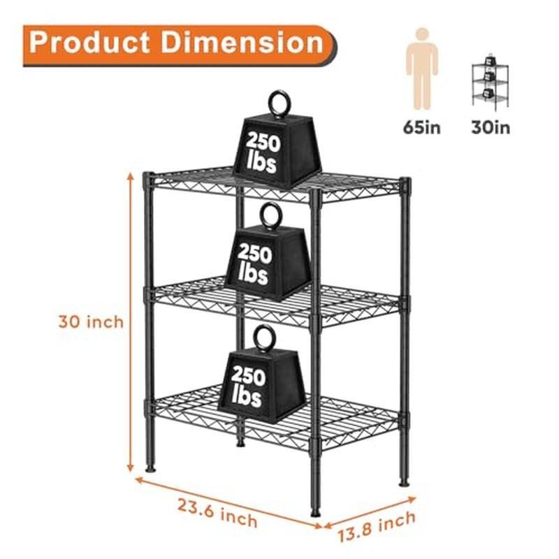 You may also like Oval Hand Woven Willow Laundry Basket W/ Handles Washable Liner Sturdy Design 65.73 USD 69.19 USD Free shipping 5% off 17 In Curved Shaft Gas String Trimmer Quick Cutting Coverage Easy Load Comfort 110.56 USD 116.38 USD Free shipping 5% off Stainless Steel Percolator Coffee Pot 9 Cup Camping Brew Outdoor Kitchen Classic 54.76 USD Free shipping Emergency Food Supply 124 Servings Freeze-Dried Survival Camping Hiking Meals US 125.88 USD 132.51 USD Free shipping 5% off High Capacity Hard Roll Towels W/ Absorbency Pockets Dispensers 950 Ft 6 Rolls 94.26 USD 99.22 USD Free shipping 5% off Extra Large Capacity Galvanized Steel Post Mount Mailbox W/ Outgoing Flag New 65.73 USD 69.19 USD Free shipping 5% off Olympic Plate Rack Organizer W/ Wheels Heavy Duty Alloy Steel Home Gym Storage 83.92 USD 88.34 USD Free shipping 5% off AC Furnace Air Filter 16x25x4 MPR 1000 MERV 11 Allergen Defense 4-Pack New 137.08 USD 144.29 USD Free shipping 5% off 10x20 Ft Outdoor Waterproof Canopy Tent Removable Sidewalls Heavy Duty Event New 132.87 USD 139.86 USD Free shipping 5% off Drip Irrigation Tube 100 Ft Roll Black 3/4 in Mainline Tubing LDPE UV-resistant 76.86 USD 80.91 USD Free shipping 5% off Wide Windsor Arch Pressure Mount Dog Gate Cage Fence Play Pen Pet yard Outdoors 68.81 USD 72.43 USD Free shipping 5% off Elegant Swivel Counter Height Barstool Upholstered Cream Cushion Kitchen Seating 419.65 USD 441.74 USD Free shipping 5% off About this item 【Adequate Storage Space】The 3-Tier metal storage shelves combine practical design with a stable structure, providing ample space to organize your items and convenient placement and retrieval of tools and items 【Heavy-Duty Structure】This is storage rack unit made of high-quality metal, which is durable, smooth, and not easily deformed. Each shelf can hold up to 250lbs, providing strong support for heavy items. Special coatings ensure rust prevention, waterproofing, high temperature resistance, and low temperature resistance, ensuring long-term use 【Adjustable Height】The wire shelf organizer adopts an adjustable design, allowing you to customize the height of each layer according to your storage needs, providing flexibility to accommodate different items and ensuring a clean and orderly space 【Wide Applicability】The rack shelf is equipped with rubber feet to protect the floor from scratches, increase stability, and prevent sliding. This storage rack has a wide range of applications and can be used in various environments, including living room, kitchen, garage, laundry room, bathroom, closet shelves etc 【Customer Satisfaction Guaranteed】This small standing shelf rack emphasizes high-quality structure and practical design, providing reliable storage solutions for various needs. Quickly assemble shelving unit without the need for any tools Room Type:Bathroom, Kitchen, Bedroom, Living Room Number of Shelves:1 Special Feature:Adjustable Product Dimensions:13. 8"D x 23. 6"W x 30"H Style:Modern Age Range (Description):Adult : : : : Material:Metal Mounting Type:Floor Mount Shelf Type:Metal Shape:Rectangular You may also like Console Table Entryway Storage Shelf Entry Modern Farm Accent Sofa Living Room 69.43 USD 73.08 USD Free shipping 5% off 1440W Double Electric Hot Plate Cooktop W/ Adjustable Temperature Control New 36.61 USD 38.54 USD Free shipping 5% off Rocker Gaming Chair Faux Leather Mesh Durable Frame Watching TV Black Green Hot 49.64 USD 52.25 USD Free shipping 5% off Electric Heating Mat Food 3 Adjustable Temps Auto Shut Off Food Warmer Pad New 47.55 USD 50.05 USD Free shipping 5% off Artificial Orchid Flowers Real Touch Ceramic Planter Tabletop Home Decor Inlet 22.04 USD 23.2 USD Free shipping 5% off Task Chair Adjustable Height & Swivel Upholsered 225 Lb Swivel Offices Bedroom 44.03 USD 46.35 USD Free shipping 5% off 15 W LED Floor Lamp Reading Standing Lamp Touch Control Adjustable Living Room 55.92 USD 58.86 USD Free shipping 5% off 20" Cyclone Air Circulator Floor Pivoting Fan Wall Mount Option Energy-efficient 56.39 USD 59.36 USD Free shipping 5% off Flip-Tite® Square Food Storage Container 19 Cup BPA-Free Stackable Airtight Seal 22.03 USD 23.19 USD Free shipping 5% off Quiet Ceiling Fan Light 3 Blades Pull Chains Reverse 48" Bronze Indoor Bedrooms 89.12 USD 93.81 USD Free shipping 5% off Foldable Hitch-Mount Platform 2-Bike Car Rack Locking Pin Adjustable Wheel Trays 88.0 USD 92.63 USD Free shipping 5% off Mega Smart Cat Cove Enclosed Cat Litterbox Helps Keep Odors Contained Navy White 43.42 USD 45.71 USD Free shipping 5% off