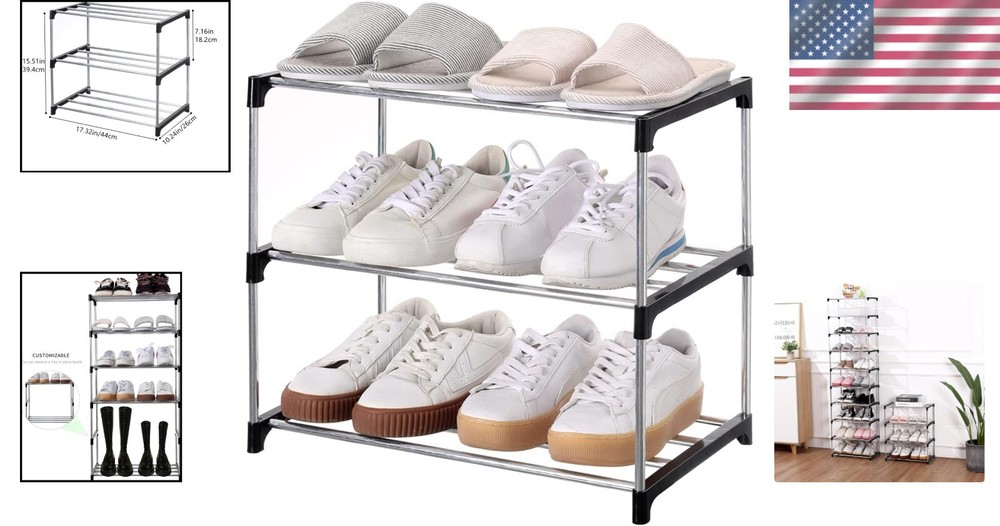 Stackable Small Shoe Rack, Space Saving Storage and Organization (3-Tier, Black) ‹ › ‹ › ‹ › ‹ › ‹ › ‹ › ‹ › ‹ › ‹ › ‹ › 3-Tier Stackable Small Shoe Rack Your perfect solution for stylish and organized footwear storage. Features: Easy assembly - simply attach the tubes into the sturdy plastic connectors. Space-saving stackable design; stack multiple units to maximize storage in minimal space. Ideal for diverse locations: dormitories, bathrooms, doorways, and more. Accommodates various types of footwear, fitting boots, high heels, slippers, and more. Stores up to 6 pairs of shoes with ease. Made from durable plastic and galvanized pipe for longevity. Compact dimensions: 17.2 × 10.3 × 14.6 inches. Lightweight at only 420g. Benefits: Declutter your space effortlessly with a modern and chic storage solution. Create additional room for your important items without sacrificing style. Easy to assemble, requiring no tools – perfect for those who love simplicity. Versatile design fits seamlessly into any room or décor. Why choose our 3-Tier Stackable Shoe Rack? Tired of chaotic shoe piles and cluttered hallways? Our 3-Tier Stackable Shoe Rack is designed to bring order and elegance to your space. With its sleek black design and durable materials, it not only enhances your interior but also offers a practical solution for stylish organization. This rack allows you to neatly store and easily access up to 6 pairs of shoes, adapting effortlessly to different settings including dorms, bathrooms, and entryways. Take control of your footwear collection in a chic manner - order your Stackable Shoe Rack today! Shipping Free & Fast Shipping - We offer free shipping to most of the USA with a normal delivery time of 3-7 days. However, due to the current situation, additional delivery time (up to 3 weeks) may be required for some items. Alternative Carriers - We may use alternative carriers (e.g. USPS, FedEx, UPS, etc.) to ensure your package arrives safely and on time. Due to the use of multiple carriers, we are unable to provide a tracking number automatically. Handling Time - Orders are processed and shipped within 1-2 business days of receiving cleared payment. Shipping Restrictions - Shipping to Alaska, Hawaii, Puerto Rico, Guam, and other US territories may incur shipping charges or delivery restrictions. Please contact us before ordering, or your order can be refunded/cancelled. State Restrictions - There may be restrictions based on your state of purchase. For example, certain items may not be shipped to California due to state regulations. Contact for Tracking Updates - If you require tracking updates or have any concerns about the delivery of your order, please feel free to contact us, and we will be happy to assist you. Return 30-Day Hassle-Free Returns - We want you to be completely satisfied with your purchase. If you are not, you can return the item within 30 days of receiving it for a full refund or exchange. Easy Return Process - To start a return, simply contact us and we will provide you with a prepaid return shipping label and detailed instructions. Restocking Fee - There are no restocking fees for returns. However, the buyer is responsible for return shipping costs if the return is not due to a seller's error. Refund Processing Time - Refunds will be processed within 5 business days of receiving the returned item in its condition. Payment We accept all major credit cards, PayPal, and Apple Pay for your convenience. Your payment information is secure and encrypted to ensure a safe and seamless transaction. Please complete your payment within 3 days of purchase to avoid any delays in shipping. Feedback Your feedback is extremely important to us. We strive to provide the best products and customer service possible. If you are satisfied with your purchase, please take a moment to leave us a positive review. If you have any concerns or issues with your order, please contact us before leaving negative feedback. We are committed to resolving any problems and ensuring your satisfaction. Contact Us If you have any questions or concerns, please feel free to out to our customer support team. You can contact us through the eBay messaging system. We are available Monday to Friday, 9:00 am to 5:00 pm EST, and we will do our best to respond to your inquiry within 24 hours. Buy it now and enjoy a pleasant shopping experience! UPC: 7445054240218 Unit Quantity: 1 Unit Count: 3.0 Count Installation Type: Freestanding Included Components: plastic connectors Recommended Uses For Product: Shoes Material Plastic: Plastic Product Dimensions: 10.24"D x 17.32"W x 15.51"H Shelf Thickness: 17.2 Inches Special Features: Portable Furniture Finish: Black Room Type: bathroom Shelf Type Plastic: plastic Product Care Instructions: Wipe with Dry Cloth Batteries Required?: No Min Required Door Width: 7.69 Centimeters Number of Items: 1 Finish Type: Stainless Steel Country of Origin: China Batteries Included?: No Special Feature: Portable Material: Plastic,galvanized pipe Mounting: Free Standing Features: Stackable,portable Care Instructions: wipe with dry cloth Type: Shoe Rack Number of Shelves: 3 Capacity: 6 pairs Number of Items in Set: One-Piece Item Weight: 0.85 pounds Item Depth: 10.3 in Color: Black Number in Pack: 1 Number of Compartments: 1 Number of Drawers: 0 Style: Shoe Finish: Stainless Steel