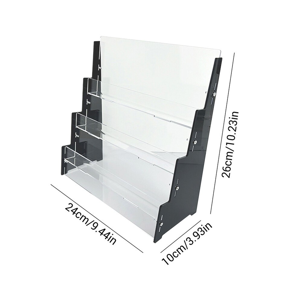 Product Description Features: Quality Acrylic: This cards display shelf is made of quality acrylic, sturdy and enduring, not easy to break. And the cards display shelf is carefully crafted, the edges features smooth, no hurts to hands 3 Tiers: The cards display shelf features 3 tiers design . The cards display shelf is ideal for precious collection displaying. Also, suitable for shop counters Easy to Access: The cards display shelf features clear that allows to clearly see and access the cards you are displaying. Also, the cards display shelf can protect your sports cards or collectibles Easy to Install: The cards display shelf is easy to install. And it will securely hold your precious sports or collectible cards on the compartment. Not easy to slip and no need to worry the cards getting damaged Ideal Gift: This cards display shelf is an ideal gift for fan of football; baseball; enthusiasts; basketball or a trading or game card collector. Ideal to showcase your sports card collection Specification : Material : Acrylic Size : 240*100*260mm Package included: 1 x Acrylic Trading Card Display Stand (Not included cards)