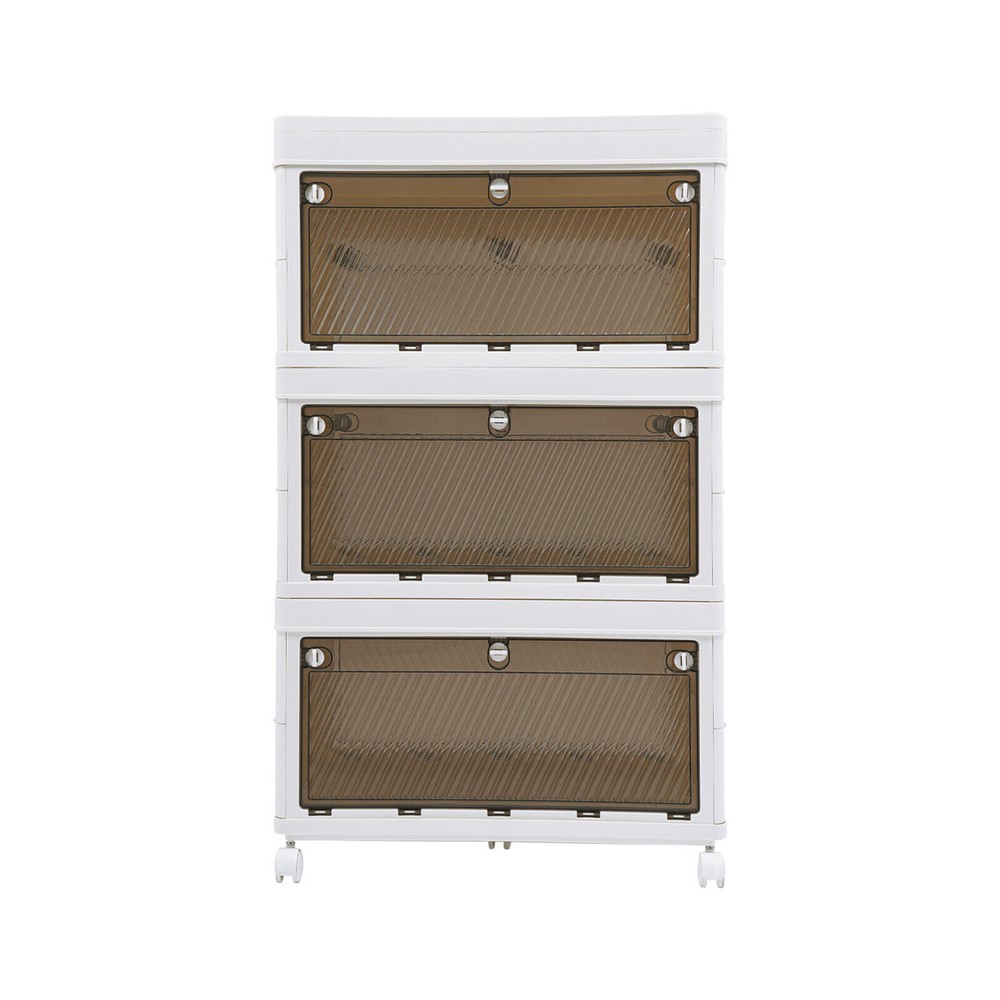 3-Tier Foldable Rolling Storage Organizer Stackable Clothes Cabinet Box