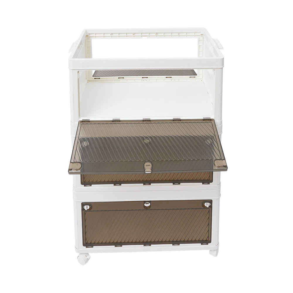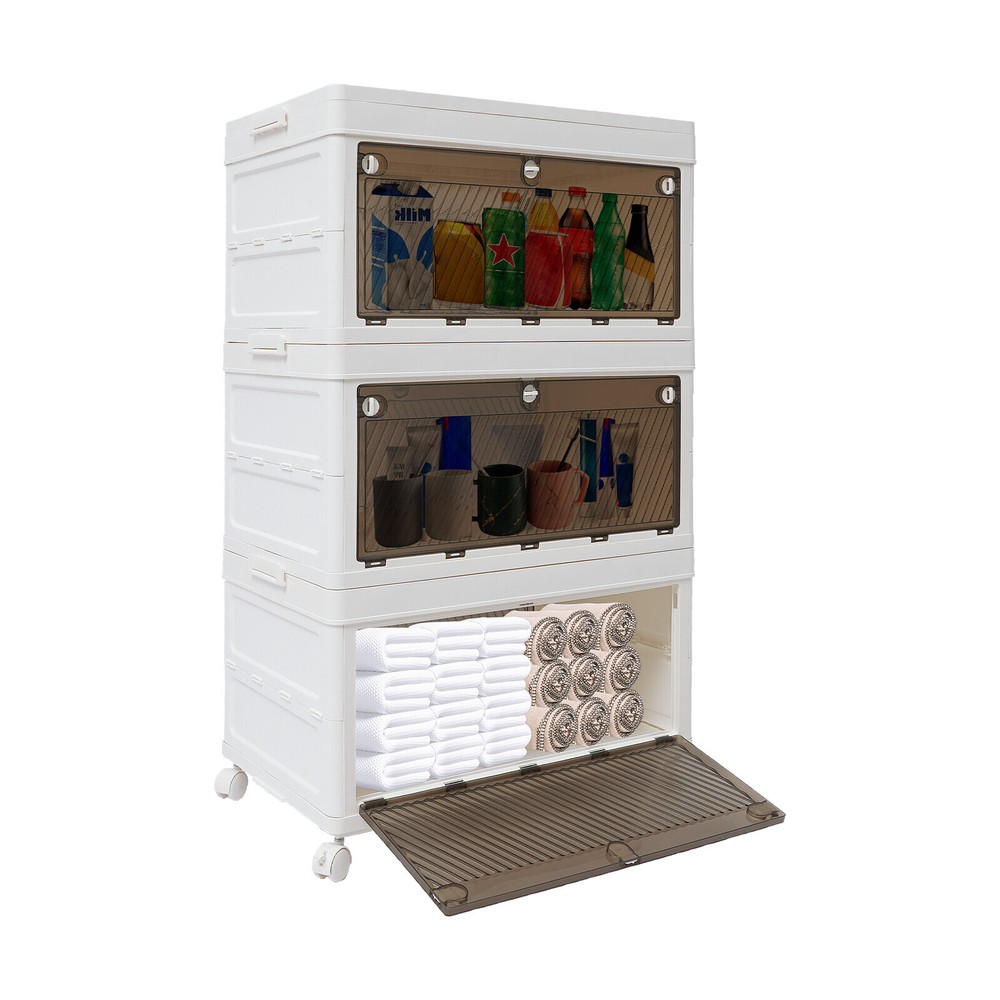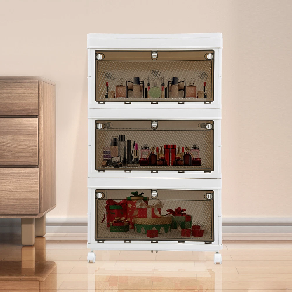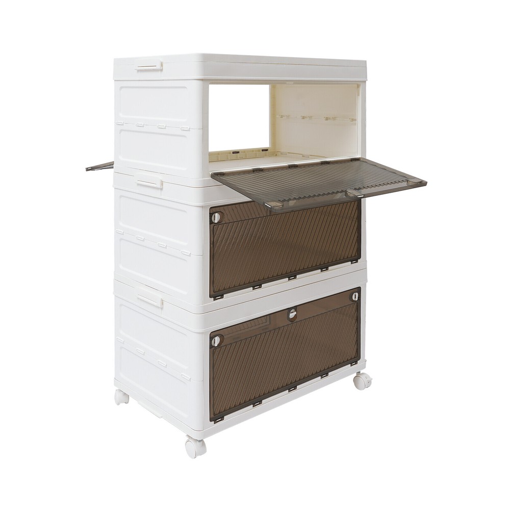 Application It is used to store clothes, books, cosmetics, toys, snacks, perfume, and other items (not included). It is suitable for a bedroom, children's room, kitchen, laundry, dormitory, and other places. Specification Color: White Material: PP Process: Injection Molding Style: Modern Number of Tiers: 3 Assembly Required: Yes Mount Type: Freestanding Type of Wheels: 4 * Universal Wheels (2 with Brakes) Total Load-bearing Capacity: About 10-15kg/22.05-33.07 lbs(For Reference Only) Product Size: 62*38*101cm/24.41*14.96*39.76 in Package Size: 62.5*25*40cm/24.61*9.84*15.75 in Gross Weight: 8kg/ 17.64 lbs Net Weight: 7.6kg/16.76 lbs Package Included 1* 3-tier Foldable Storage Organizer 4* Universal Wheels 3 Tier Foldable Storage Organizer w/Wheels Stackable Clothes Cabinet Storage Box Description Are you troubled by home storage? Are you looking for a storage cabinet that is both practical and easy to move? Our 3-tier foldable storage organizer will be your ideal choice, making your home environment instantly tidy and orderly. The spacious design makes it superior in storage capacity, meeting your diverse storage needs. It is a home storage artifact that combines space optimization, convenient mobility, durability, and thoughtful design. Choosing our product means choosing a more organized and convenient way of life. Key Features Made to Last: This product is made of premium PP, treated with an injection molding process, which is sturdy, impact-resistant , scratch-resistant , and rust-resistant , ensuring long-term aesthetics and practicality. Modern Appearance: The pleasing white and tan color scheme, simple appearance , and smooth lines add beauty elements to your room. It plays a unique decorative role while using, bringing an exquisite charm into your home. Spacious Space: It has a 3-tier design, which is enough to easily store clothes, snacks , cosmetics, and other items(not included) , making your room cleaner. Foldable Design: It can be quickly folded flat when not in use to be placed in the corner of the room or car boot to save storage space. User-friendly: Unlike magnetic buckles, the door panel of this product adopts mechanical buckles, which have better locking mechanisms and will not easily pop out. In addition, it can be opened from the front door and rear door, both of which can conveniently retrieve items from different directions, providing you with convenience. Easy to Move & Fix: Four universal wheels (two with brakes) make the whole product easily moved from one place to another and can be fixed at will, greatly enhancing efficiency and convenience. Visible Design: The translucent doors allows you to quickly search for items while ensuring that internal items are not completely exposed, providing a certain level of privacy protection. Free Assembly: The modular design allows you to freely choose the number of tiers to assemble, fully adapting to different storage needs and space layouts. Effortless Cleaning: It has a smooth surface and a simple structure, so you only need to wipe the dust or residue with a towel. Ideal Gift: With good performance and a modern appearance, it can be used as an ideal housewarming gift for parents, friends, and lovers so that they can also enjoy a more exquisite and convenient life. Good Customer Service: We aim to provide quality products and services. If you have problems, please feel free to contact us. We will reply and solve the problem for you as soon as possible. Details Raised Bottom: It is conducive to moisture resistance and facilitates cleaning. Side Buckles: They make each tier of the organizer firmly fixed, and improve the stability of the product. Smooth Edges: They no t only increase the beauty of the product but also improve the safety of use. Application It is used to store clothes, books, cosmetics, toys, snacks, perfume, and other items (not included). It is suitable for a bedroom, children's room, kitchen, laundry, dormitory, and other places. Specification Color: White Material: PP Process: Injection Molding Style: Modern Number of Tiers: 3 Assembly Required: Yes Mount Type: Freestanding Type of Wheels: 4 * Universal Wheels (2 with Brakes) Total L oad-bearing Capacity: About 10-15kg/22.05-33.07 lbs (For Reference Only) Product Size: 62*38*101cm/24.41*14.96*39.76 in Package Size: 62.5*25*40cm/ 24.61 * 9.84 * 15.75 in Gross Weight: 8kg/ 17.64 lbs Net Weight: 7.6kg/ 16.76 lbs Package Included 1* 3-tier Foldable Storage Organizer 4* U niversal Wheels Notes Please note that this product does not include other storage items shown in the picture. Please use within the load-bearing range of the product. Please allow the slight color difference caused by the shooting light and 1-3cm error due to manual measurement, and make sure you do not mind before ordering. Payment Delivery details Terms of sales About us Contact us Payment We accept ebay payment 。 Fees such as import duties, taxes are not included in the item price or shipping costs. These charges are the buyer's responsibility. Delivery details Shipping: 2-9 working days to: USA Terms of sales We maintain high standards of excellence and strive for hundred percent customer satisfaction. Feedback is very important to us. We hope that you contact us immediately before you give neutral or negative feedback, so that we can address your concerns. It is impossible to address issues if we do not know about them! About us Your satis faction is our ultimate goal. We work hard to earn your trust and future business. Our certified technicians have tested each item before shipping. The unit comes with 1 year limited warranty on all manufacturing defects. a) If you receive a defective item, you may return it or ask for a discount. Please contact us within 14 days after you receive the package. b) What you returned must be intact and in its original packaging as re? u. Customer is responsible for shipping costs of the returned item. c) We will cover the cost of shipping back t with th
