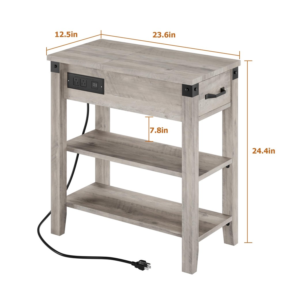 About this item Versatile End Table: Designed for narrow spaces. Side tables living room with flip-top drawer and two storage shelves. It can meet all your daily needs for home storage and display. The small side table is perfect for the living room, bedroom, and some small spaces in the middle of the sofa. Size: 23.5”L x 12.5”W x 24.5”H Bedside Table with Outlets: The small table comes with a charging station that has 2 standard 120V AC outlets, 2 USB-A ports, and a 6.5-foot extension cord. The end table charging station is designed on your left vertical side, fire-resistance PC shell, which is safer to use. you don't have to worry about coffee, water, etc. spilling and causing electric shock. Drawer Storage Design: The flip top of the narrow side table drawer can be opened separately without affecting the use of the other half of the tabletop. The drawer with metal handle can also be pulled out for separate storage without wasting the original internal space. Sturdy & Stable: The side tables bedroom is made of high-quality MDF engineered wood. The side table desktop can bear 140 pounds, and each storage shelf can bear 25 pounds. The thick tabletop and sturdy legs provide excellent stability and ensure a long service life. The load-bearing board of the storage shelves are sturdy and not easy to deform after long-term use. Easy to Assembly: This end tables living room comes with numbered parts and clear instructions, as well as precise mounting holes, and can be assembled by 1-2 people in about 20 minutes. Any quality problem, assemble problem or missing parts please don't hesitate to contact us first. We will reply to you within 24hours and give you the best solution. Product Description Why choose the farmhouse end table ? Upgraded farmhouse end table paying attention to the quality of products, and aims to make your entertainment stand have better performance. The selected high quality MDF+PB engineered wood material, with exquisite workmanship and strong structure, is the choice for grey side table. High-grade Engineered Wood Waterproof, wear-resistant, excellent stability and durability, cleaning and maintaining it is a breeze. Charging Station Features 2 standard 120VAC outlets, 2 USB ports, allows you to charge multiple electronic devices. Flap Tabletop The flip top can be opened separately without affecting the use of the other half of the tabletop. Payment Delivery details Terms of sales About us Contact us Payment We accept payment either via PayPal or any of the following credit cards; Visa, MasterCard, Discover, and American Express. Delivery details 1. We will delivery out at the handing time when we receive the payment. 2. The delivery time is 3-5 business days to US by usually time.The parcel maybe delay 1-2day of the weekend.Due to the bad weather,Holidays,Hot Season ect.the parcel maybe delay,If you have any problems,mssage us,we will try our best to solve it. 3. We ship to your eBay address. Please make sure your eBay address is correct before you pay. 4. If you want to change the shipping address,message us before our send out. Terms of sales If you are not satisfied with the item for any reason, please do not quick to leave negative/neutral feedback even open request and case without any communication with us. We devote ourselves making EVERY CUSTOMER in 100% Satisfactory and resolve any problem. Thank you for your understanding and recognition,we are always leave positive feedback to all our customers. About Reply: All replies will be sent to your email box, if you do not get response within 24 hours (Sat. & Sun. excluded) please check your eBay My Messages in case that our emails will be filtered automatically by your settings. About us automobilee-01 is a brand new store but we are one of North America’s top online suppliers of specialized, high-quality aftermarket online retailers and suppliers, committed to developing new markets. We primarily offers tool sets, auto parts, home goods, etc..With over 20 years of product selection and manufacturing experience, we delivers unparalleled quality, value, service and satisfaction. Our highly-trained, professional staff offer in-depth knowledge and personalized assistance for customers worldwide. Providing our customers with a simple, hassle-free experience with best-in-class customer service is more than a goal. Contact us Any problem please rest assure to contact us by eBay message first. We will reply you as soon as we can. We will deal with it within 24hs on working days. Brand Unbranded Item Length 23.6 in Item Width 12.5 in Item Height 24.4 in Type End & Side Tables Shape Rectangular Style Contemporary/Modern Color Gray MPN Does not apply Indoor/Outdoor Indoor Material MDF/Chipboard Care Instructions Easy Care Department Adults Item Weight 28.7 Pounds Features Storage Shelves, Drawers, with Charging Station Room Bedroom, Dining Room, Home Office/Study, Living Room Number of Drawers 1 Tabletop Material Wood Handle Material Metal Manufacturer Warranty 5 Years