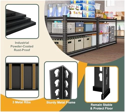 Weight capacity: Maximum weight: 1320 Pounds Brand: Does Not Apply Size: 3-Tier,40"Wx18"Dx36"H Furniture Finish: Metal Item model number: 40W x 18D x 36H,3-Tier Style: Modern MPN: Does Not Apply Item Width: 1 Model Name: Large Customer Reviews: 4.4 out of 5 stars Age Range Description: Adult Room Type: Pantry, Garage, Basement, bathroom, bedroom, living room, kitchen Specific Uses For Product: Decorative Items, Home Organization, Kitchen Utensils, Books Country of Origin: China Product Dimensions: 18"D x 40"W x 36"H Finish Type: Powder Coated Number of Items: 1 Assembly Required: Yes Included Components: shelves gtin13: Does Not Apply UPC: Does Not Apply Product Name: Metal Shelving Unit Shelf Thickness: 1.2 Millimeters Item Length: 1 Item Weight: 30 Pounds Number of Shelves: 1 Special Feature: Heavy Duty, Adjustable, Scratch Resistant Manufacturer: Does Not Apply Color: Black Weight Limit: 1320 Pounds Unit Count: 1.0 Count Date First Available: October 18, 2024 Product Care Instructions: Wipe with Dry Cloth Back Style: Cross Back Item Height: 1 Recommended Uses For Product: Storage Type: Does Not Apply EAN: Does Not Apply