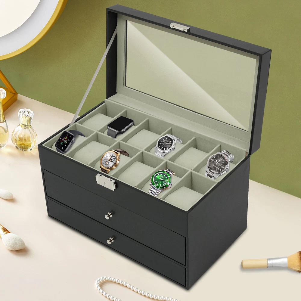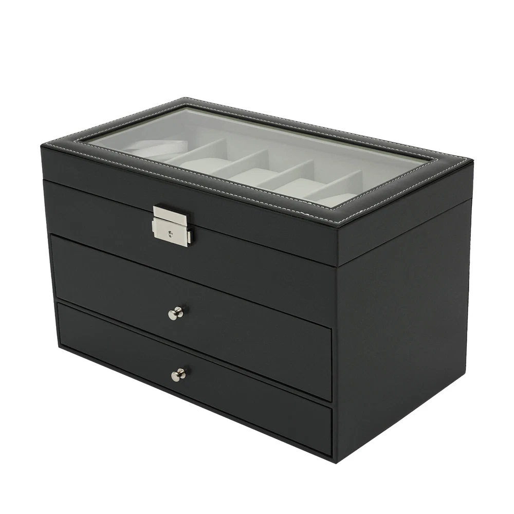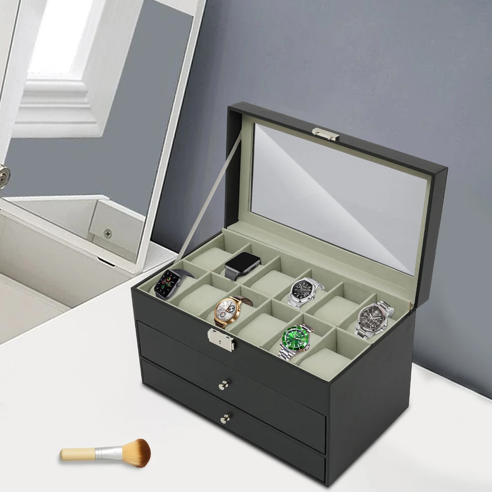 3-Tier Density Board Watch Box Case Jewelry Box For Holding Jewelry & Item New Description Jewelry holds an aura of sophistication and nobility, a status symbol that highlights your unique taste and elegance. However, for those who cherish jewelry, organizing it is also essential. This jewelry box is such a sacred sanctuary where jewelry is protected and delicately displayed, preserving its original condition and beauty. Key Features Sturdy and Durable: It is made of high-quality density board, PU, and velvet, so it is eco-friendly, odorless, anti-corrosion, and rust-resistant , ensuring long-term use. Jewelry Organizer: It has 2 pull-out drawers with many compartments and the top tier has 12 watch slots, so it can store earrings, jewelry, glasses, watches, etc. separately, providing enough space for you to collect all kinds of jewelry. Thoughtful Design: The visible, clear lid does a great job of protecting your watch and jewelry from dust and scratches. It also allows you to easily see through the box, making it very easy for you to pick out a watch that matches your outfit. Exquisite and Rustic: The rectangular frame with a black appearance gives this box a natural, delicate, and elegant look that will complement your jewelry and be a beautiful addition to your home. Compact and Lightweight: With its compact size (13.19*7.64*8.07 inches) and lightweight (6.6 lbs), it is excellent for storing jewelry while saving desktop space. High Safety: The solid lock and key provide extra security for the first tier. In addition, the interior is lined with soft velvet to prevent your jewelry from scratches and damage. Effortless Cleaning: Thanks to its smooth surface and simple construction, you can wipe it clean with a damp rag. Protective Package: To prevent the product from being damaged during transportation, we packed it in foam to protect your product to the maximum extent possible. Ideal Gift: Thanks to its practicality, it will make a fine gift for family, friends, and loved ones on Christmas, Father's Day, Mother's Day, birthdays, anniversaries, and holidays. Details Smooth Edges: The rounded edges are burr-free , which is comfortable to touch a nd can care for your skin. Smooth Handles: They can help you open or close drawers more easily. Stable Hinge: It acts as a good support when you open the product. Application It can be placed in the bedroom, living room, dressing room, etc. It can hold cufflinks, necklaces, bracelets, earrings, brooches, ties, sunglasses, and any other jewelry and items. Specifications Style: Modern Shape: Rectangle Color: Black Target Audience: Women and Men Material: Density Board, PU, Velvet Recommended Uses For Product: Jewelry, Watch Assembly Required: No Mount Type: Tabletop Number of Tiers: 3 Overall Size: 33.5*19.4*20.5cm/ 13.19*7.64*8.07in Each Compartment Size(Top Tier): 8.5*5*4.5cm/3.35*1.97*1.77in Each Compartment Size(Middle Tier): 15*5.6cm/5.91*2.2in Each Compartment Size(Bottom Tier): 10*8.5*3.7cm/3.94*3.35*1.46in Package Size: 34.5*24*21.5cm/13.58*9.45*8.46in Gross Weight: 3.1kg/6.83lbs Net Weight: 3kg/6.6lbs Package Included 1* Jewelry Box Notes Please note that this product does not include any jewelry or watches. Please note that this product is not suitable for takeaway use when traveling Please allow the slight color difference caused by the shooting light and 1-3cm error due to manual measurement and make sure you do not mind before ordering. Payment Delivery details Terms of sales About us Contact us Payment We accept ebay payment 。 Fees such as import duties, taxes are not included in the item price or shipping costs. These charges are the buyer's responsibility. Delivery details Shipping: 2-9 working days to: USA Terms of sales We maintain high standards of excellence and strive for hundred percent customer satisfaction. Feedback is very important to us. We hope that you contact us immediately before you give neutral or negative feedback, so that we can address your concerns. It is impossible to address issues if we do not know about them! About us Your satis faction is our ultimate goal. We work hard to earn your trust and future business. Our certified technicians have tested each item before shipping. The unit comes with 1 year limited warranty on all manufacturing defects. a) If you receive a defective item, you may return it or ask for a discount. Please contact us within 14 days after you receive the package. b) What you returned must be intact and in its original packaging as re? u. Customer is responsible for shipping costs of the returned item. c) We will cover the cost of shipping back t with the shipping rate indicated in the registration page. We will send you a new unit or refund the full payment you paid. Thank you. Contact us Business Hour Business Hour: Monday To Friday: 8:30 AM to 5:00 PM (Beijing China time) Due to time zones, our reply to your questions may not be immediately. But within above working time, we will reply your email within 24 hours. If it's non-workdays, please kindly be patient and wait till Monday. Please contact us with ebay message. Please feel free to contact us if you have any questions. Monday To Friday: 8:30 AM to 5:00 PM (Beijing China time) Due to time zones, our reply to your questions may not be immediately. But within above working time, we will reply your email within 24 hours. If it's non-workdays, please kindly be patient and wait till Monday. Please contact us with ebay message. Please feel free to contact us if you have any questions. Brand Unbranded MPN N/A Type N/A Material Density Board, PU, Velvet Assembly Required No Color Black Shape Rectangle Mount Type Tabletop Number of Pieces 1 Gross Weight 3.1kg/6.83lbs Net Weight 3kg/6.6lbs Package Size 34.5*24*21.5cm/13.58*9.45*8.46in Number of Tiers 3 Overall Size 33.5*19.4*20.5cm/13.19*7.64*8.07in Items Included Jewelry Box Suitable For Cufflinks Theme N/A Lining Material N/A Features N/A Department Unisex Adults Country/Region of Manufa