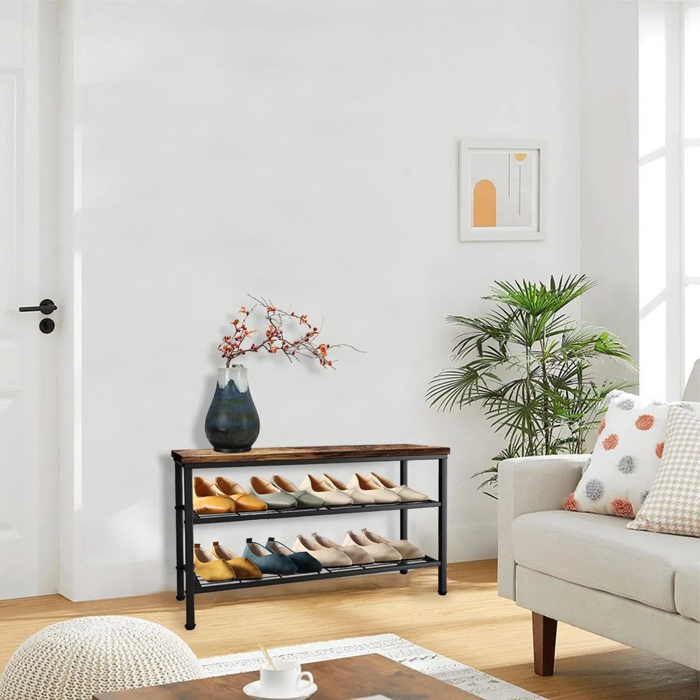 1. This shoe rack is a game-changer! The sturdy metal frame and wood top make it super durable, and the 3-tier design saves so much space. Perfect for shoes, books, or even plants—it’s stylish and functional. Love how it doubles as a bench too! Highly recommend for any home.