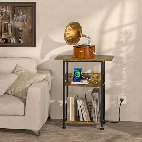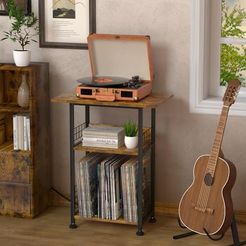 Return Policy Fast Delivery Trusted seller Record Player Stand - 3-Tier Rustic Brown Vinyl Storage Table with Charging Station, Stylish Turntable Organizer for Living Room & Bedroom, Elegant Gift for Music Lovers & Vinyl Enthusiasts Product Description THREE-TIER RECORD RACK - This record player stand with vinyl storage features three tiers, including a spacious tabletop for record players of all sizes. Additionally, the 2nd and 3rd tier open storage shelves can hold up to 100 records, making it a categorized storage solution that combines artistry and practicality. The classic rectangular frame and lightweight design of the Tall Record Display makes it easy to move and carry. SIDE TABLE WITH OUTLETS AND USB PORTS - The charging station includes 2 three-prong AC outlets and 1 USB port + 1 Type-c, which not only provide direct power to your record player but also give you the freedom to charge your cell phone, lamp, and laptop. The 59" power cord provides great convenience for everyday use. PRACTICAL DESIGN - Measuring 11.81" (D) x 15.75" (W) x 31.70" (H), this turntable stand can be used not only as a record player stand, but also as a side or end table in small spaces. Iron mesh and small wooden boards to keep records and items from falling off the second and third open shelves of the record rack. Adjustable feet to help keep the record player cabinet level on uneven floors. FARMHOUSE STYLE END TABLE - The Mid-Century Record Player End Table combines a rustic brown wood grain with matte black metal brackets to retain the vintage feel of the wood grain without losing the modern industrial style. The turntable stand is made of sturdy and durable wood panels and a corrosion and rust resistant metal frame to ensure long term use. THICK PACKAGING AND EASY ASSEMBLY - We pack these industrial record player racks in thickened Styrofoam and tough cardboard boxes to ensure they arrive in perfect condition. These vinyl record player racks come with detailed instructions, labeled parts, and an assembly tool to help you assemble the record organizer rack more easily. Also, you can check out our installation video. Shipping Returns Payment Shipping Shipping is FREE to all addresses other than APO/PO boxes in the lower 48 states. All our stock ships from US-based warehouses. Shipped via USPS or UPS (depending on location and package weight) Unless stated otherwise, all orders will ship within 24-72 hours of your payment being processed. Check our feedback to see the great reviews of FAST shipping we offer. Returns Seller does not accept returns Payment We currently accept payment via eBay managed payments only. Once payment is cleared, we will dispatch your shipment within 1-3 business days. Please refer to the "Shipping" tab for more information regarding shipping speed to your destination.