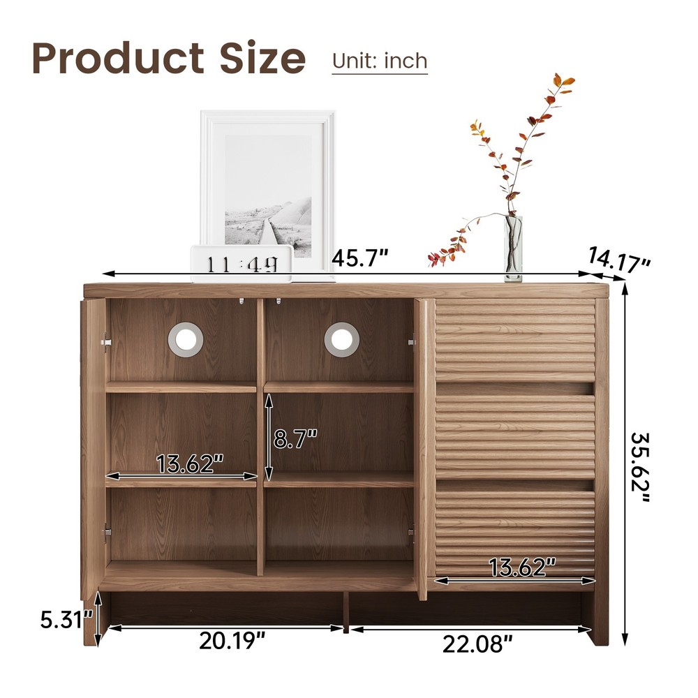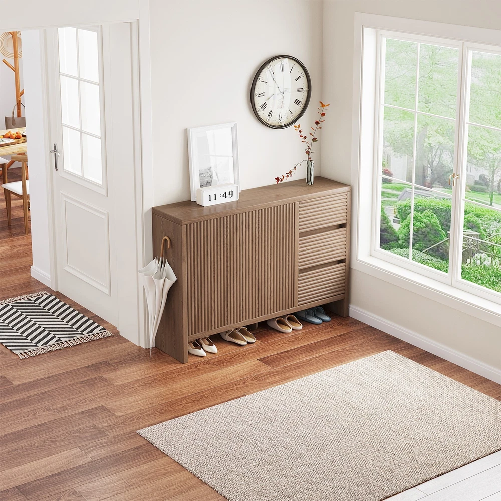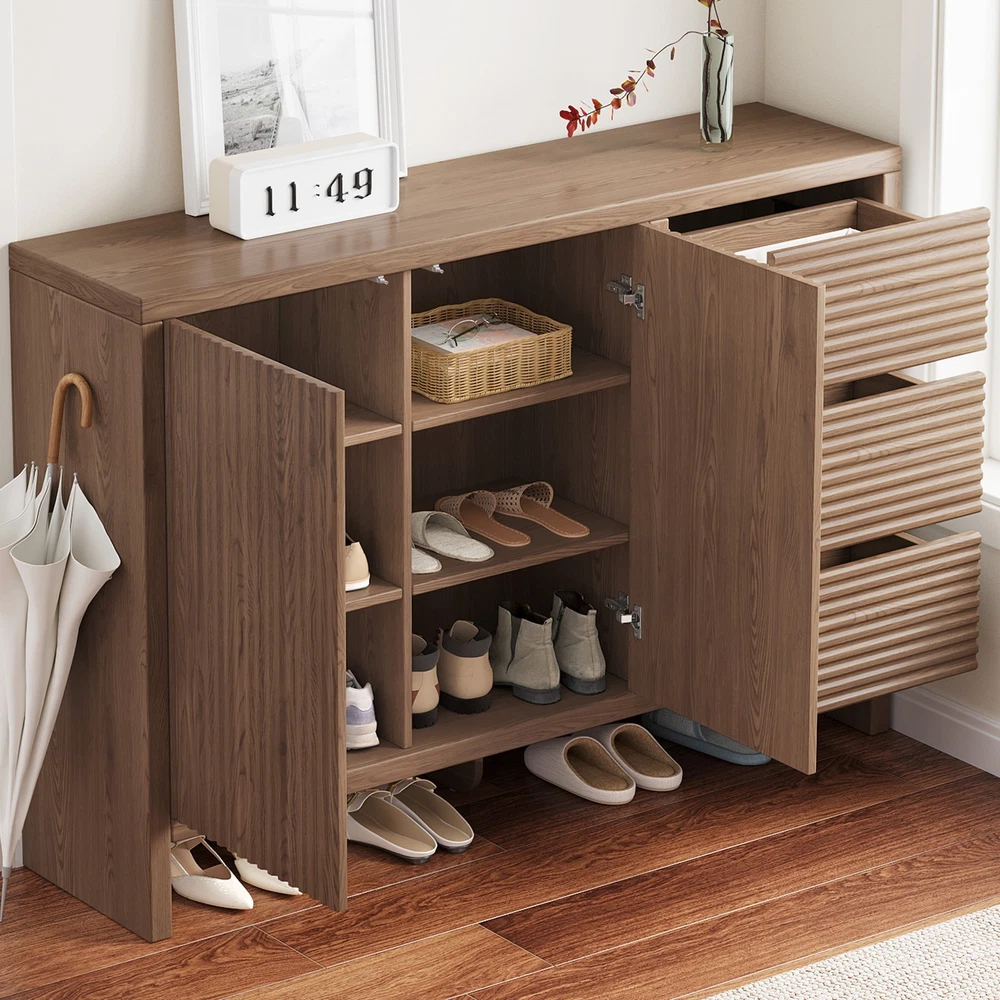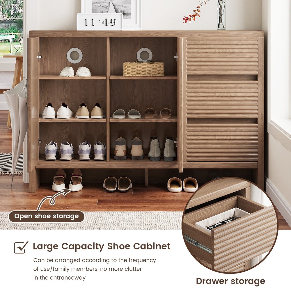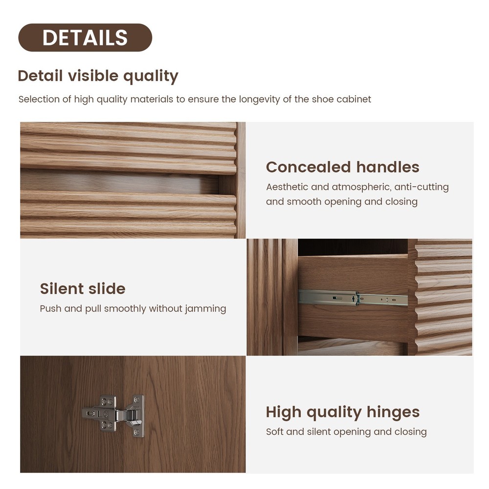 About this Item 【Large Capacity Shoe Cabinet】: This 45.7-inch shoe storage cabinet offers spacious storage with two cabinet doors and three interior shelves, allowing you to store multiple pairs of shoes neatly and efficiently. The two drawers provide extra storage for small essentials like socks, keys, or accessories. It’s an ideal shoe organizer for families who value both storage space and a tidy home. 【Multi-Functional Storage Design】: The cabinet features a bottom open shelf where you can conveniently place frequently worn shoes for easy access. The top surface serves as an additional display area for plants, decorations, or storage baskets. With multiple storage formats in one design, this shoe cabinet helps you make the most of every inch, keeping your entryway stylish and clutter-free. 【High-Quality Materials】: Built with premium engineered wood, this shoe organizer cabinet is sturdy, durable, waterproof, and scratch-resistant. The reinforced frame and high-quality metal hardware ensure long-term stability and smooth door operation. Whether placed in your entryway, hallway, or living room, this cabinet maintains its elegance and functionality for years of daily use. 【Breathable Design】: To keep your shoes and the interior fresh, the Guyii Shoe Storage Cabinet includes three ventilation holes on the back panel. This thoughtful design improves air circulation, prevents moisture buildup, and reduces unpleasant odors—keeping your footwear dry, clean, and ready to wear at all times. 【Easy Assembly & Customer Service Guarantee】: The Guyii Shoe Cabinet comes with clear instructions and all necessary hardware for quick, hassle-free assembly. Its smooth surface makes it easy to clean—just wipe with a damp cloth to maintain its beautiful walnut finish. We are committed to providing 100% customer satisfaction—if you encounter any issues, our team will offer prompt and professional service to ensure you have the best shopping experience.