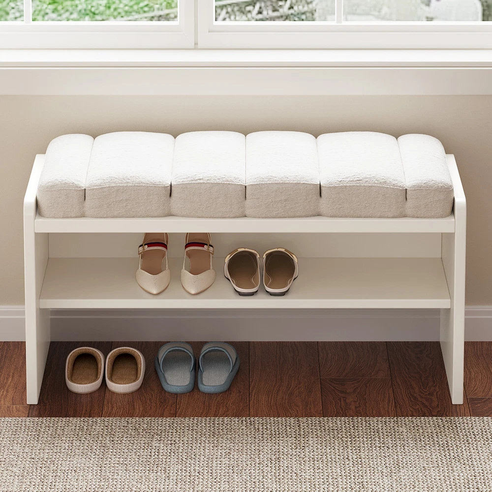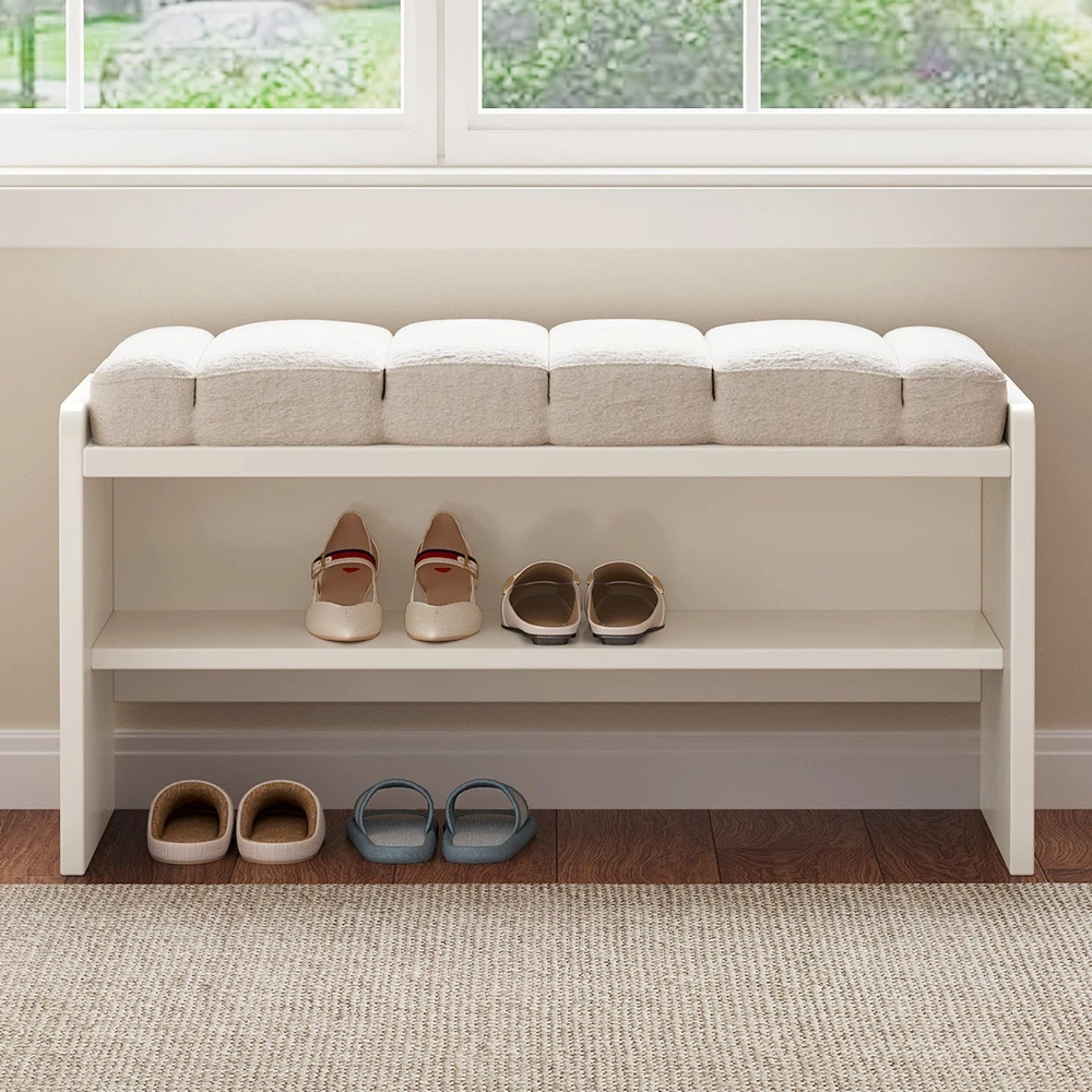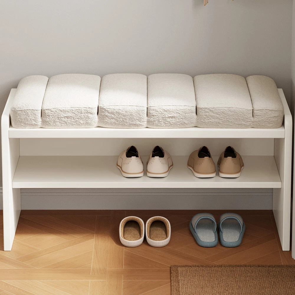Guyii 3-Tier Shoe Storage Bench with Soft Cushion Ottoman Shoe Rack for for Entryway, Entry, Living Room, Hallway, Beige Soft & Comfortable Cushion: The top seat is covered with a soft, breathable fabric that feels like velvet to the touch. Filled with thick, resilient foam, it provides a plush and cozy seating experience while remaining durable and resistant to wear. The skin-friendly and breathable material ensures comfort even with long-term use Dual-Layer Shoe Storage Rack: Designed with a practical two-tier shoe rack, this bench maximizes your storage without taking up extra space. The open design keeps your shoes organized, visible, and well-ventilated, making it easy to access everyday footwear. Ideal for households with multiple pairs of shoes to manage. High-Quality Engineered Wood Frame: Built with premium engineered wood, the frame ensures long-lasting strength and stability. This bench is sturdy and wobble-free, capable of holding up to daily use without sagging or squeaking. Its smooth surface is resistant to scratches and easy to clean. Versatile Placement in Any Room: This multifunctional bench suits a variety of spaces, including your entryway, bedroom, living room, or even at the foot of your bed. Its neutral beige tone and minimalist design make it a perfect match for modern, farmhouse, or classic décor styles. Easy Assembly & Exceptional Service: Comes with clear instructions and all necessary hardware for a hassle-free setup. Most customers complete assembly in under 15 minutes. Plus, we offer top-notch customer support—if you encounter any problems, we’ll respond promptly and resolve the issue 100% to your satisfaction. Packing Includes: 1 x Shoe Bench 1 x Assemble Instruction 1 x Accessories required for assembly