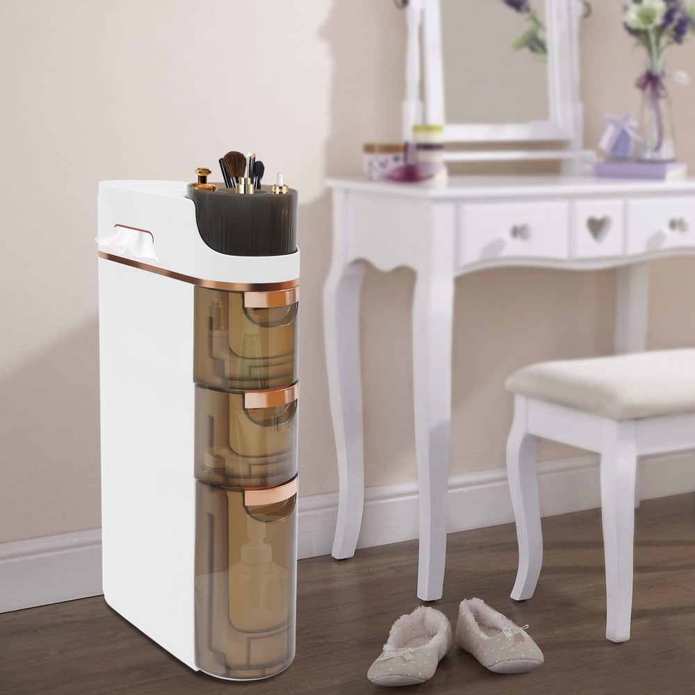 Specification Material: PP Process: Injection Molding Color: White, Brown Style: Modern Shape: Rectangular Assembly Required: No Mounting Type: Free Standing Number of Drawers: 3 Total Load-bearing Capacity: 25kg/55.12lbs Product Size: 18*41*74.5cm/7.09*16.14*29.33in Package Size: 80*45*21cm/31.5*17.72*8.27in Gross Weight: 5.28kg/11.64lbs Net Weight: 5.02kg/11.07lbs Package Included 1* Bathroom Storage Cabinet 3-tier Slim Bathroom Storage Cabine W/ Drawers For Small Spaces Plastic Cabinet Description Our storage cabinet is an efficient storage solution designed for modern home environments. It not only has a simple and generous appearance but also has a large storage space, which can meet your needs for categorized storage of cosmetics, snacks, and other items, making it an ideal choice for enhancing the tidiness of your living space. Key Features Made to Last: Made of PP with an injection molding process, this product is andale mono -resistant, scratch-resistant , and sturdy, ensuring your long-term use. Storage Assistant: The grooved top cover expands storage space while preventing items from falling. The removable storage box has 4 storage compartments, allowing you to store various small items such as makeup tools and kitchen tools. The private item storage area can avoid awkward situations and store some fragile items or things that cannot be touched by children. In addition, three drawers of different heights can be used to store items of varying heights. Humanized Design: The semi-clear brown drawers allow you to quickly find the items you need. The widened drawer handle makes it more convenient for you to pull out the drawer. There are tissue slots on both sides of the tissue storage compartment, which can adapt to different room layouts. These slots adopt a widened design with smooth edges to ensure that the paper does not get stuck. Besides, their colors are also very beautiful. Waterproof and Dustproof : This product can keep your items from moisture and dust to a certain extent, ensuring a better storage environment for items in bathrooms, kitchens, bedrooms, etc. Strong Load-bearing Capacity: The premium material and sturdy rectangular structure enable this product to bear a total weight of 55.12 lbs , allowing you to use it with peace of mind. Space Saving: The vertical design and the 7.09 -inch slim body allow you to place the product in some narrow positions, maximizing space utilization. Ready to Use: This product does not need assembly, and you can use it directly upon receiving it, saving you time and effort. Ideal Gift: With good performance and a generous appearance, you can give it as an ideal gift to your family or friends to help them create a neat and tidy home environment. Buy with Confidence: We stand behind all our guests and look forward to assisting you with your purchase. It is our pleasure to answer your confusion and questions. The end of the story between us is not "we sell and you buy". Details Convenient Rollers: The bottom rollers allow you to easily move this product from one room to another for your convenience. Wide Drawer Opening: It is convenient for you to take out items. Application This product is suitable for kitchens, bathrooms, bedrooms, laundry rooms, living rooms, dressing rooms, cloakrooms, hotels, and dormitories, and can be used to store food, spices, skincare products, remote controls, toys, toiletries, cleaning products, laundry detergent, etc. Specification Material: PP Process: Injection Molding Color: White, Brown Style: Modern Shape: Rectangular Assembly Required: No Mounting Type: Free Standing Number of Drawers: 3 Total Load-bearing Capacity: 25kg/55.12lbs Product Size: 18*41*74.5cm/7.09*16.14*29.33in Package Size: 80*45*21cm/31.5*17.72*8.27in Gross Weight: 5.28kg/11.64lbs Net Weight: 5.02kg/11.07lbs Package Included 1* Bathroom Storage Cabinet Notes Before purchasing, please carefully measure the space size of your seam to see if this product can fit properly. Please note that this product does not include other stored items shown in the picture. Please use this product within its load-bearing capacity to avoid damage. Please allow the slight color difference caused by the shooting light and 1-3cm error due to manual measurement, and make sure you do not mind before ordering. Payment Delivery details Terms of sales About us Contact us Payment We accept ebay payment 。 Fees such as import duties, taxes are not included in the item price or shipping costs. These charges are the buyer's responsibility. Delivery details Shipping: 2-9 working days to: USA Terms of sales We maintain high standards of excellence and strive for hundred percent customer satisfaction. Feedback is very important to us. We hope that you contact us immediately before you give neutral or negative feedback, so that we can address your concerns. It is impossible to address issues if we do not know about them! About us Your satis faction is our ultimate goal. We work hard to earn your trust and future business. Our certified technicians have tested each item before shipping. The unit comes with 1 year limited warranty on all manufacturing defects. a) If you receive a defective item, you may return it or ask for a discount. Please contact us within 14 days after you receive the package. b) What you returned must be intact and in its original packaging as re? u. Customer is responsible for shipping costs of the returned item. c) We will cover the cost of shipping back t with the shipping rate indicated in the registration page. We will send you a new unit or refund the full payment you paid. Thank you. Contact us Business Hour Business Hour: Monday To Friday: 8:30 AM to 5:00 PM (Beijing China time) Due to time zones, our reply to your questions may not be immediately. But within above working time, we will reply your email within 24 hours. If it's non-workdays, please kindly be patient and wait till Monday. Please contact us with ebay message. Please feel free 
