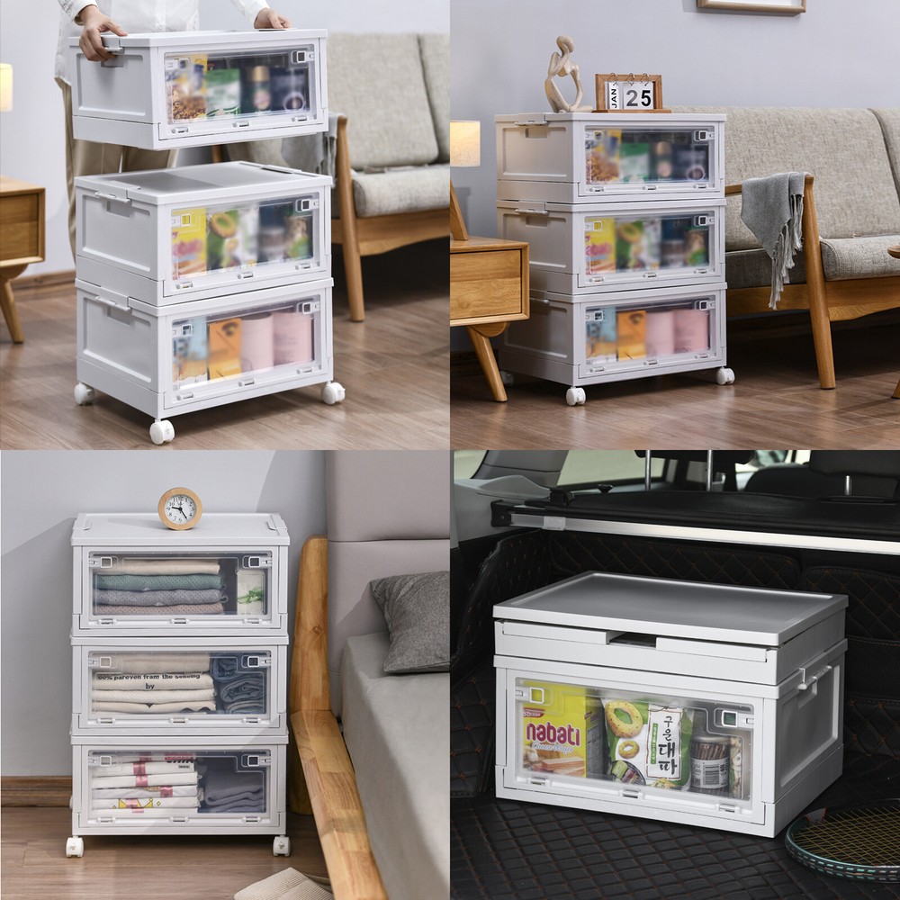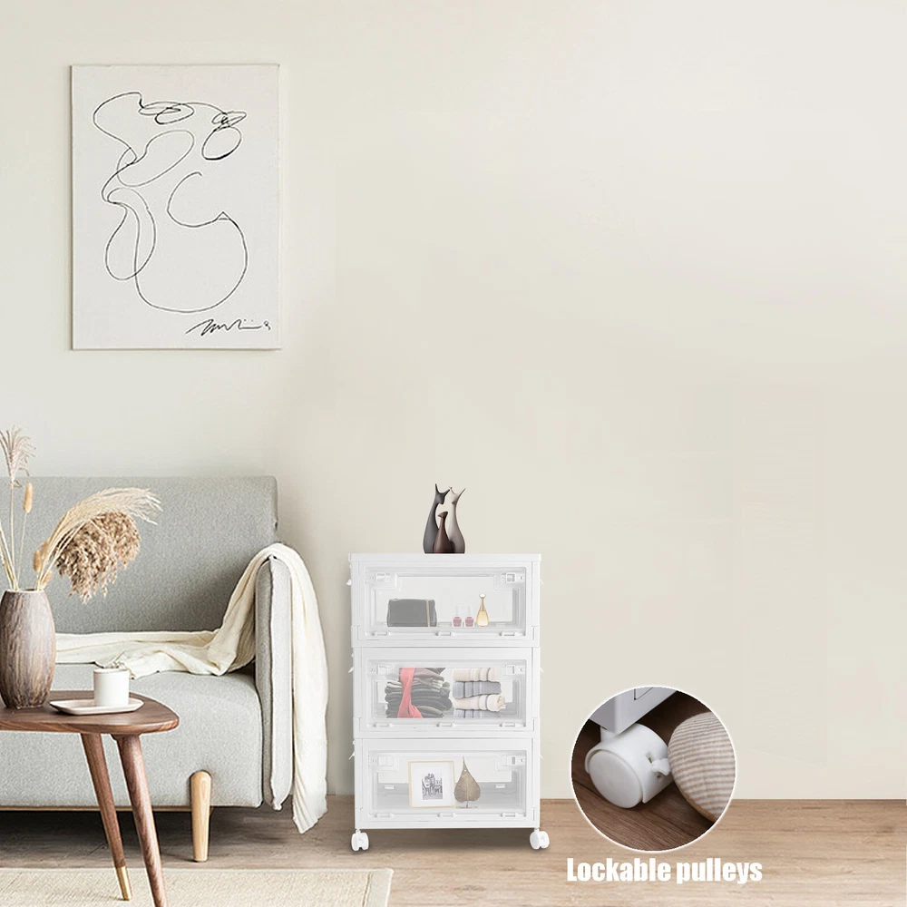 $ 36.6Storage Bins with Lids and Doors Collapsible Storage Cabinet with Wheels