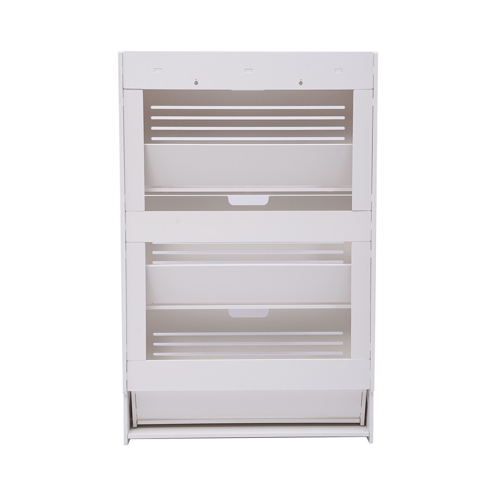 3-Layer Shoe Organizer White Tipping Shoe Cabinet Shoe Rack Cabinet for Entryway Description Are you still worried about having too many shoes lying on the mat at your entrance? This flip-up white shoe cabinet is just what you need! It is made up of three shoe cupboard tiers and a shelf layer, which is enough for your storage needs. You can keep your keys and bags handy, so you can get out more easily and quickly. This shoe cabinet is a good choice for the hallway, living room, and bedroom. Key Features High-quality Material: The shoe cabinet is made of 0.39inch thick PVC plates, which are tough and not easily deformed. It has a good weight-bearing capacity and longe r service life . Great Home Decor : In classic white with a simple design, this shoe storage cabinet provides a sense of modernization, which also enriches your entire entryway and gives your house a new look, showing off your lifestyle. Large Capacity : The shoe storage cabinet has 3 tiers and can store up to 9 pairs of shoes (the number depends on the height of the shoes) to meet your storage needs. Humanized Design: Its surface is smooth without burrs, and it will not scratch the hand. The corners of the frame are designed with rounded corners, so you will not be injured during use. Relieving Your Fatigue: This beautiful shoe cabinet guards the door every day and welcomes you home. It allows you to put away your exhaustion as soon as you get home and start enjoying leisurely home life by taking off your shoes. Organized Lifestyle: This shoe cabinet cleverly integrates shoe storage into life, placing it at the doorway to store your messy shoes, making it pleasing to the eyes as soon as you open the door, bringing you an organized lifestyle. Strong Load-bearing: Each layer of this shoe storage cabinet can be ar about 11.02lbs, e ven if you put heavier leather shoes or boots on it, you can use it with peace of mind. Tipping Bucket Design: The entire shoe cabinet features a tipping bucket design for easy opening and closing, making it very easy to use. It also keeps dust out of the shoe cupboard. Space Saving: With a small footprint of 27.56*6.69 inch at the bottom, it can be placed in every corner of the home. By using the doorway space wisely, even a small entryway can be turned into a storage treasure trove. Easy to Clean: Its PVC material makes it very easy to clean, all you need to do is wipe it down regularly with a dry cloth or wash away any serious stains with soapy water. Easy to Assemble: With all the accessories and instructions included in the package, it is easy and quick to assemble the cabinet without much effort. Easy to Clean: Its PVC material makes it very easy to clean, all you need to do is wipe it down regularly with a dry cloth or wash away any serious stains with soapy water. Easy to Assemble: With all the accessories and instructions included in the package, it is easy and quick to assemble the shoe cabinet without much effort. Details Top Platform: The top platform is spacious enough to hold keys, photo frames, etc., making it very practical. And with an anti-drop fence on the platform, items will not fall easily. Full Plate Layer: The layer rack is designed with a full plate, which can effectively prevent the ash on the bottom of the shoes from falling onto the shoes on the lower layer. At the same time, the full plate layer shelf to place shoes more stable, and even high heels will not fall. Pre-drilled Holes: There are two pre-drilled holes at the top of the back of the shoe cabinet to allow you to fix the cabinet to the wall and prevent it from collapsing. Louvered Doors: Each tier of the shoe cabinet is designed with louver doors for breathability, which accelerates the air circulation in the cabinet and inhibits the growth of bacteria. Concealed Handle: The concealed pull handle is semi-circular. The curved shape is not only subtle and beautiful but also makes it easy to open and close the shoe cabinet without hurting your hands. Reserved Skirting: The skirting at the bottom of the back of the shoe cabinet keeps the cabinet close to the wall and is not easily shaken. Gloves: You can wear the gloves included in the package for installation to prevent abrasion of your hands. Application It is suitable to be placed at the door, living room, or bedroom used to place slippers, casual shoes, high heels, boots, leather shoes, and other shoes, as well as some daily necessities such as keys, books, and umbrellas. It can be used as a shoe cabinet, bookshelf, and storage rack. Specification Color: White Installation Type: Freestanding Style: Modern Shape: Rectangular Material: PVC Number of Tiers: 3 Load Capacity Per Tier: 5kg/11.02lbs Gross Weight: 8.3kg/18.3lbs Net Weight: 8kg/17.64lbs Plate Thickness: 10mm/0.39inch Product Size: 70*17*109cm/27.56*6.69*42.91inch Package Size: 116*37*9cm/45.67*14.57*3.54inch Package Included 1 * Shoe Cabinet 1 Pair * Gloves 1 * Mobile Phone Holder 2 * Fixing Backing 1 * English Manual Other Accessories for Installation Notes Please allow the slight color difference caused by the shooting light and 1-3cm error due to manual measurement, and make sure you do not mind before ordering. Payment Delivery details Terms of sales About us Contact us Payment We accept ebay payment 。 Fees such as import duties, taxes are not included in the item price or shipping costs. These charges are the buyer's responsibility. Delivery details Shipping: 2-9 working days to: USA Terms of sales We maintain high standards of excellence and strive for hundred percent customer satisfaction. Feedback is very important to us. We hope that you contact us immediately before you give neutral or negative feedback, so that we can address your concerns. It is impossible to address issues if we do not know about them! About us Your satis faction is our ultimate goal. We work hard to earn your trust and future business. Our certified technicians have tested each item before shipping. The unit comes with 1 y
