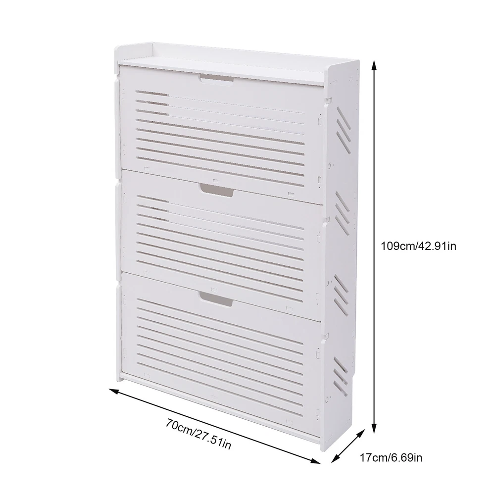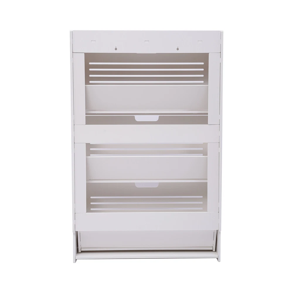 3-Tier White Tipping Shoe Rack Cabinet for Entryway Storage