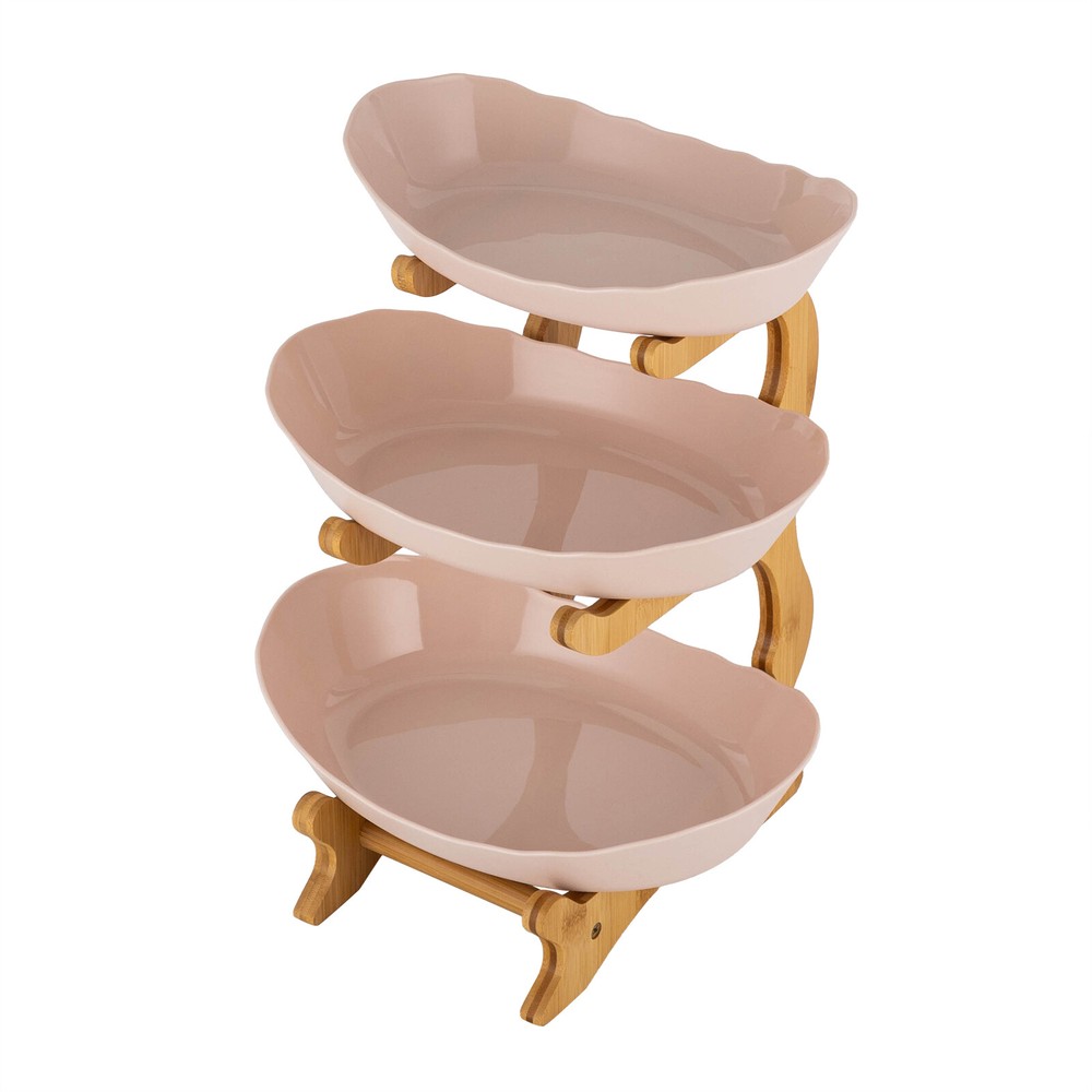 This 3-tier bamboo fruit tray is a stylish and practical addition to any kitchen! The sturdy wood and food-grade PP bowls keep fruits and veggies fresh while saving counter space. The polished yuanbao design looks elegant, and the three-tier setup makes organizing easy. Assembly is simple, and the natural beige color fits any decor. Perfect for displaying snacks or adding a rustic touch to your dining table!
