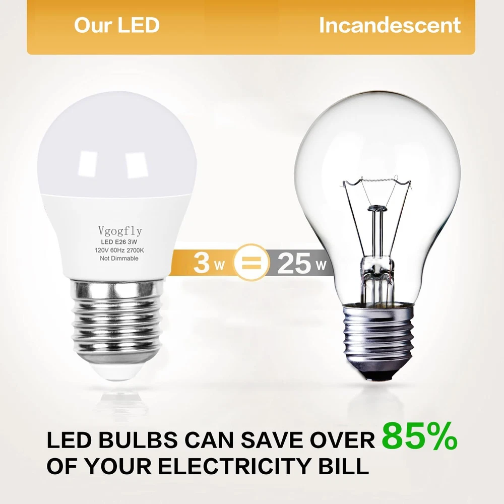 ENERGY SAVING: 120v 25W led bulb have special LED filaments that consume only 3 watts worth of energy, while offering the equivalent of 25W of incandescent light bulb. Incandescent light bulb light about 1.5 hours, our fridge light bulb can light about 10 hours, and is therefore good for your energy bill. PERFECT PERFORMANCE: standard A15 shape warm white 2700k led bulb for ceiling fan giving off a clear and natural illumination, which can give your home a brightness feeling. 450lm 3 watt 240 beam angle can provide suitable lighting for you when you’re writing, reading or have a nap. WIDE-RANGING USE: Used in countless home appliances, 25 small watt light bulbs works well in all kind of scenes lamps, ceiling fan light bulbs, bathroom fan light bulb, incandescent ceiling light for the bedroom, room, living room, dining room, kitchen.c EASE OF USE: 25w led light bulbs is made of plastic according to the LED chip unique cooling requirements thus ensuring long life. You won't need to replace them frequently. With the expertise in the LED technology, our product not only superior in performance but also make your lighting experience more enjoyable andcomfortable anytime, anywhere.