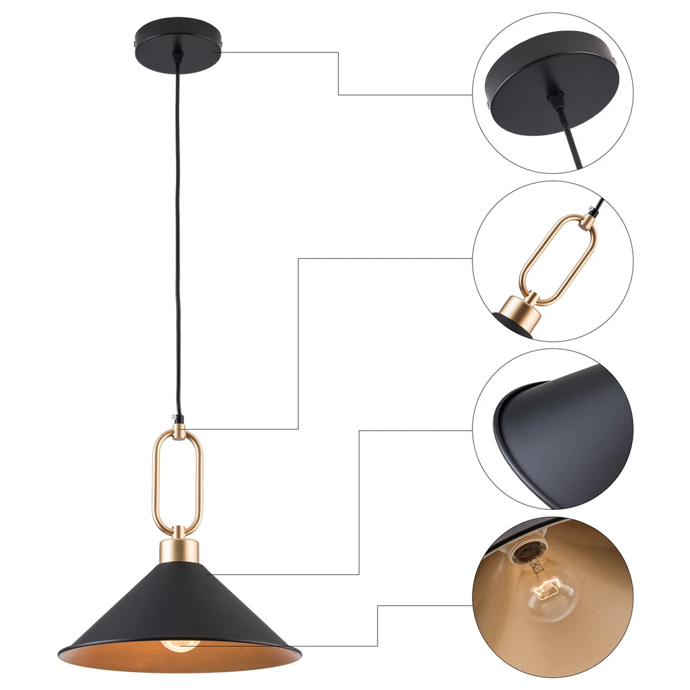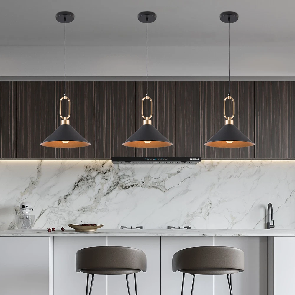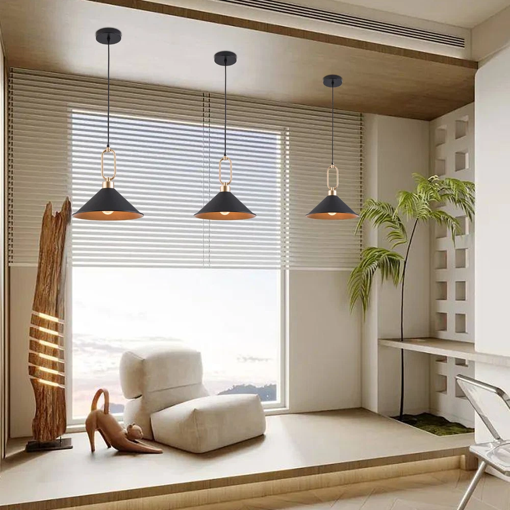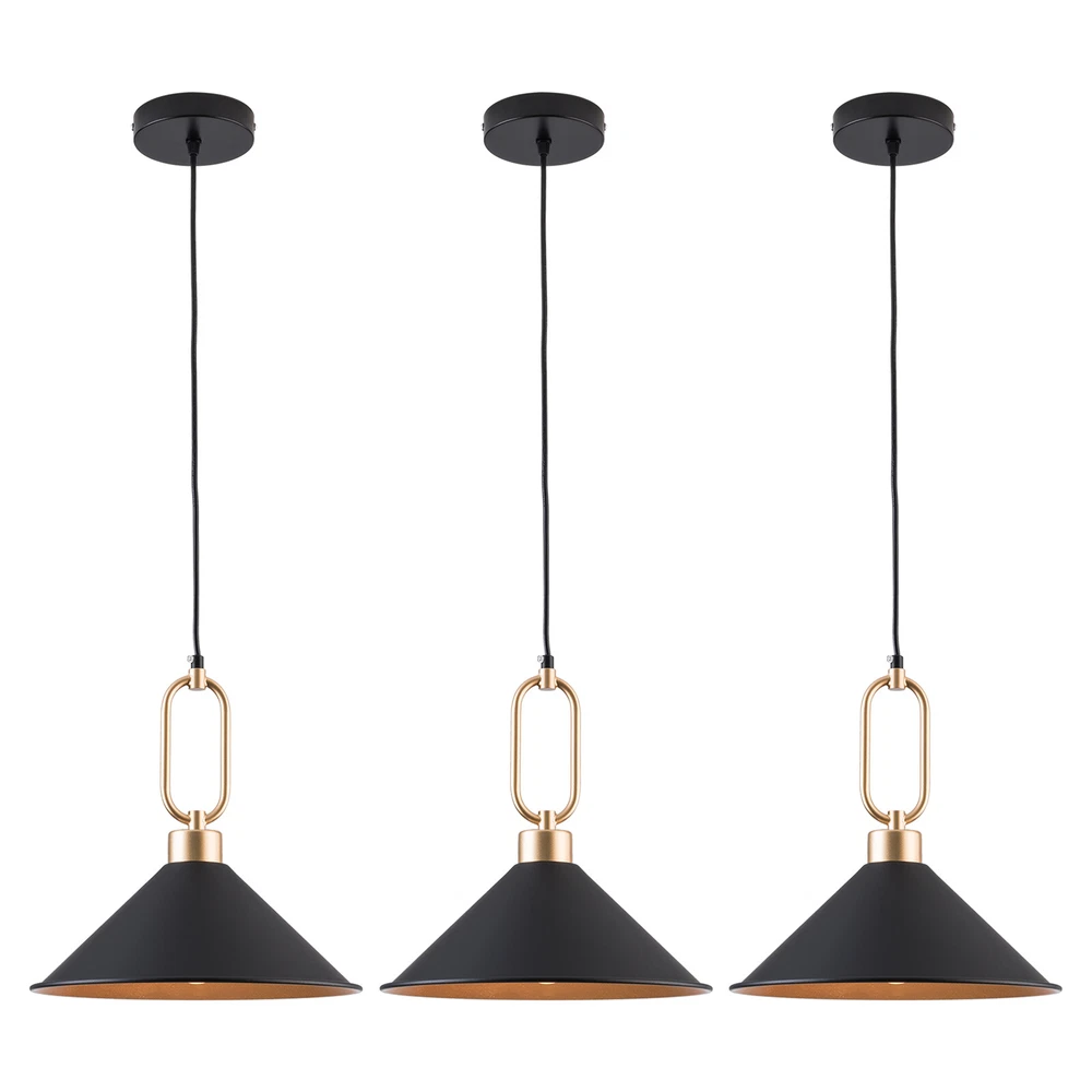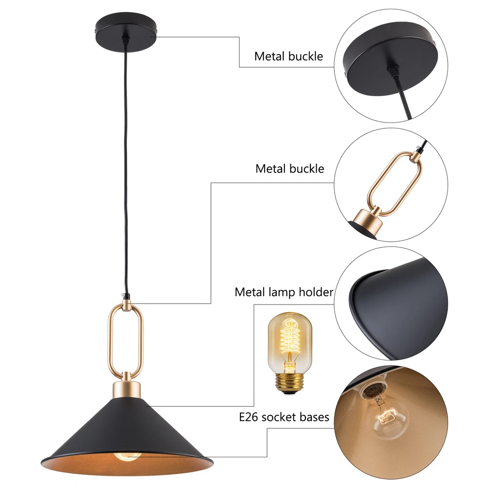 UPC: Does not apply Installation Type: Hanging Type: Pendant Light Color: Warm White Light Source: E26x3 (Not Included) gtin13: Does not apply Features: Industrial Pendant Light, 3-Light, High-quality Material, 3-Pack, Adjustable Height, Firm Design Assembly Required: Yes  Brand: Unbranded Finish: Baking Paint Department: Adults Room: Living Room,Bedroom,Dining Room,Hallway,Home Office,Kitchen,Bar Voltage: 110 V Lighting Technology: LED/CFL/Incandescent Wattage Per Bulb: 60W Style: Modern Power Source: Hardwired Energy Star: A+++ MPN: Does Not Apply Installation Area: Indoor Wire Length (Adjustable): 100cm/3.3 ft Material: Iron, PPC, Copper Labels & Certifications: Energy Efficient Cord Color: Black,Gold Color: Black
