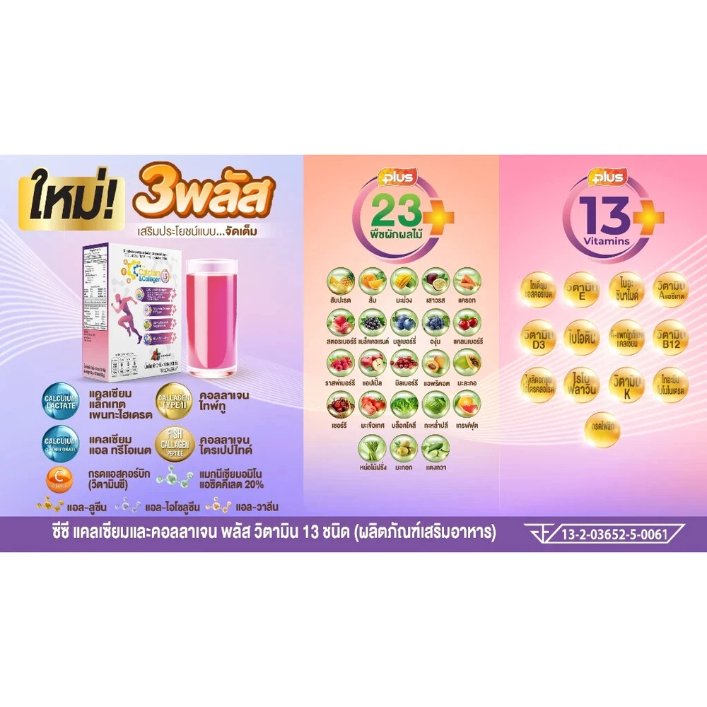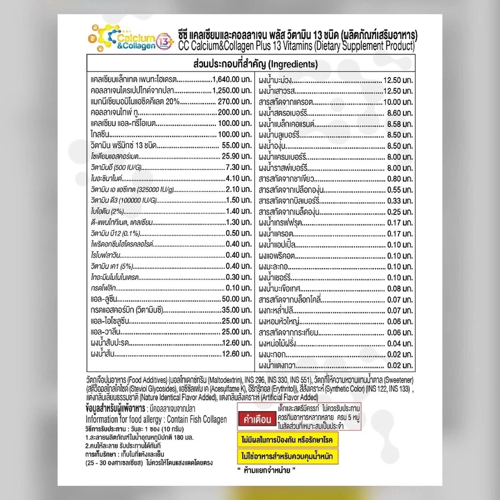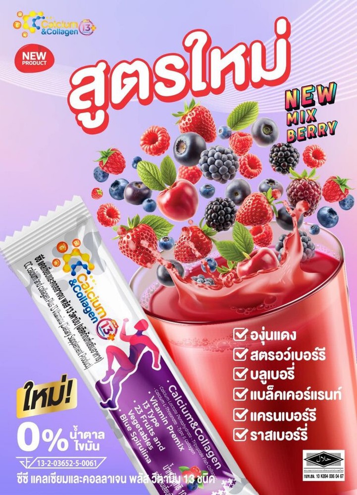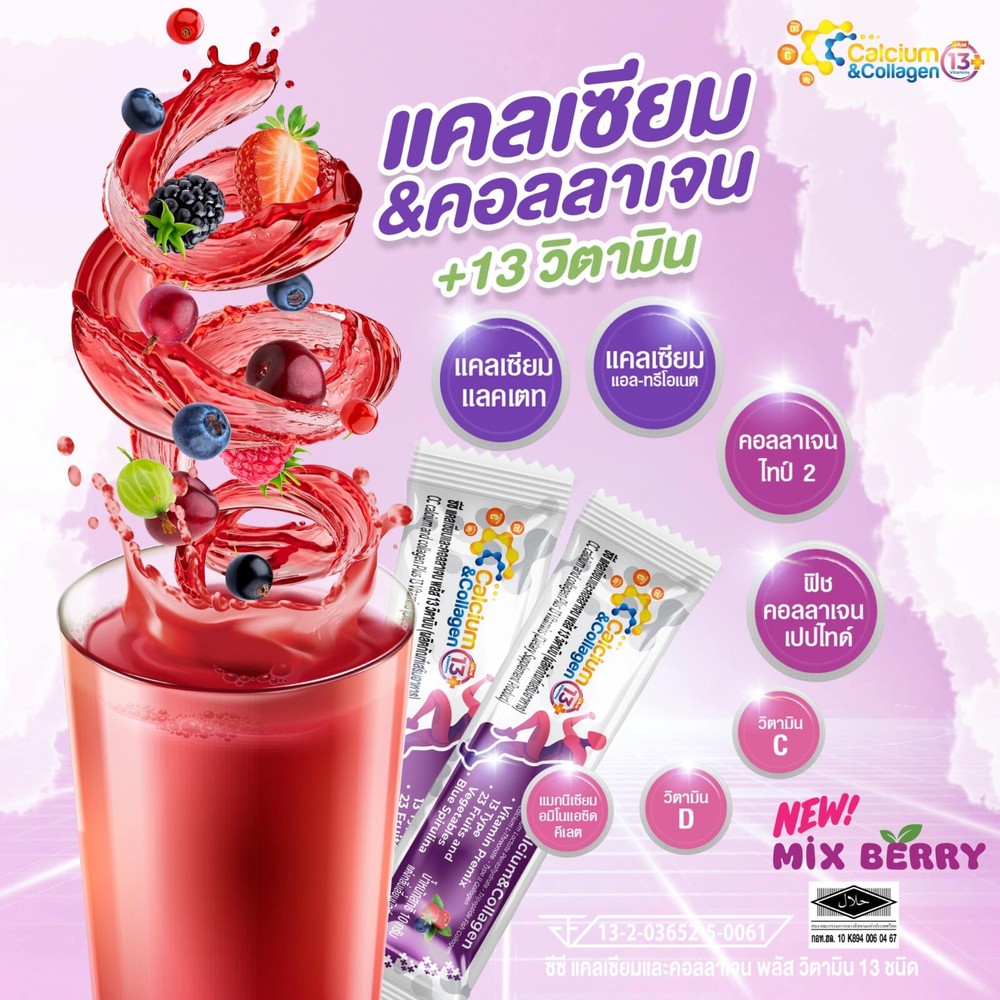 3X CC Calcium Collagen Vitamin Plus Antioxidant Joint Bone Knee Skin Mix Berry Free Shipping with tracking number Condition : New , Original Quantity : 3 Boxes (30 sachets) Size : 10 sachets / 1 Box FDA Registration Number 13-2-03652-5-0061 Product details CC Calcium & Collagen Plus 13 (New Product / New Formula) (CC Calcium and Collagen Plus 13 Vitamins) 1 box, new size, contains 10 sachets Main components 1) Calcium Lactate Pentahydrate 2) Calcium L-Threonate 3) Tri-Peptide Fish Collagen 4) Type II Collagen 5) BCAAs (L-Leucine, L-Isoleucine, L-Valine) 6) Vitamin Premix 13 Type 7) 23 Fruits & Vegetables 8) Blue Spirulina 0% sugar 0% fat How to eat: Mix and drink 1 sachet a day with 1 glass of water On an empty stomach (morning or before bed) Benefits of CC Calcium and Collagen Plus 1. Strengthens tissue Reduce inflammation of joints, knees are stuck, shoulders are stuck, walking is difficult, moving is painful 2. Strengthen bones, increase bone mass to be strong. Elderly people often have reduced bone mass, causing osteoporosis, brittle bones, thin bones, easy to break 3. Increase necessary collagen in the joints, reduce friction that causes joint inflammation, cracking sounds 4. Increase collagen in the skin to make it white, smooth, clear, plump, bouncy skin that looks younger ** Calcium that is soluble in water, can absorb more than 95%, helps increase bone mass and takes care of the problem of cracking knees. There is also collagen type two that helps increase tissue, connective tissue for the body more.** Note : The result may vary by individual. Thank you very much. Have a good day.